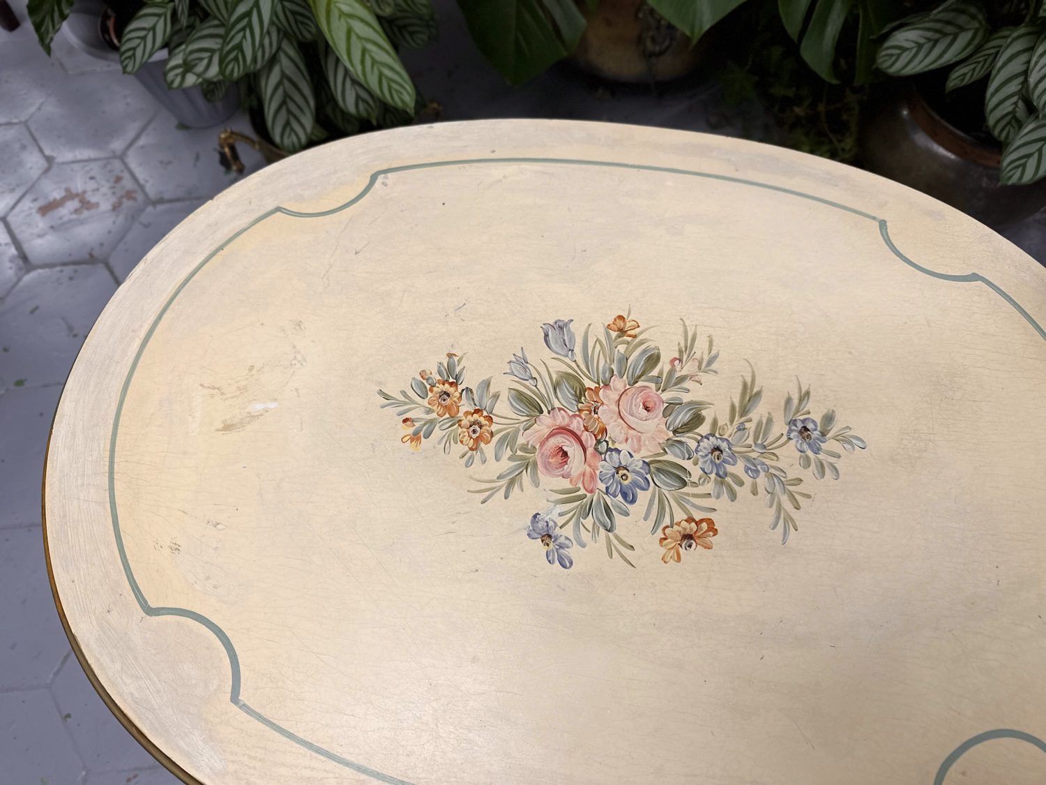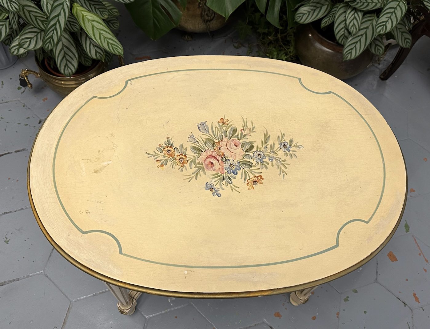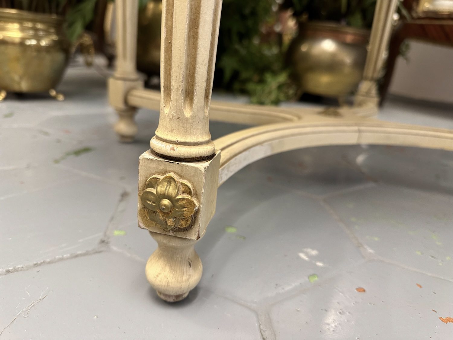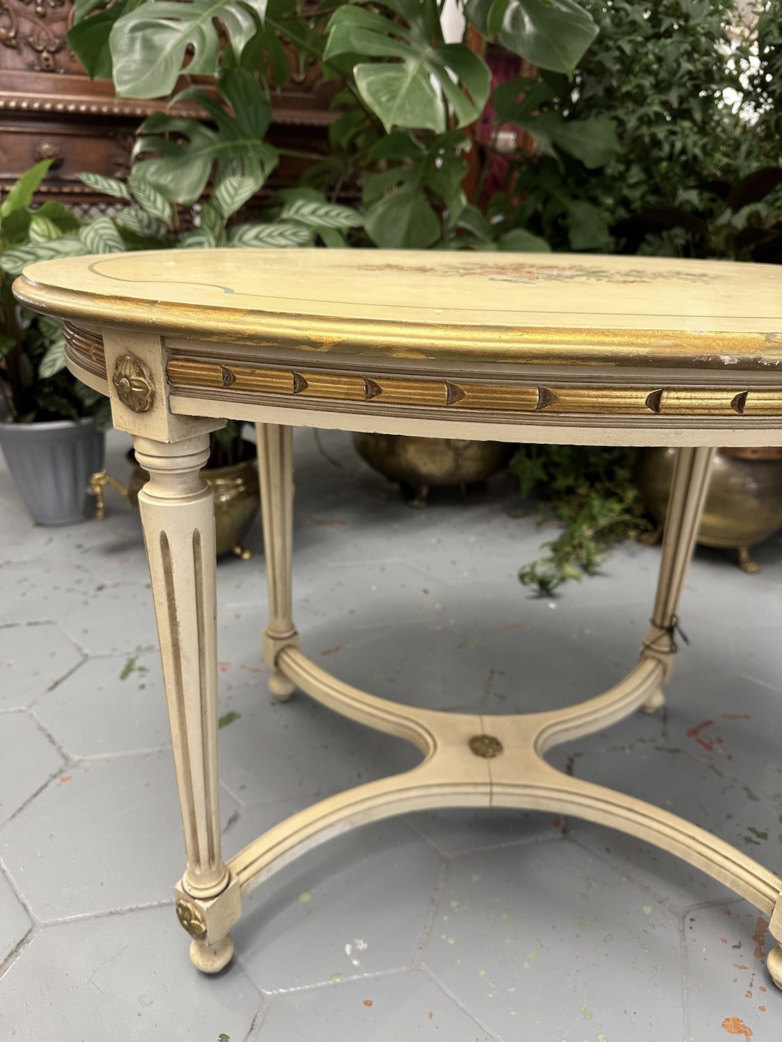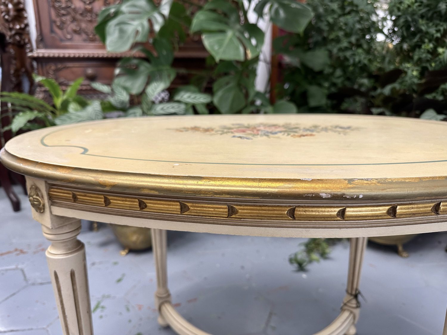 Koka, Kafijas Galds ar Zelta Krāsas un Ziedu Detalizāciju (4247)