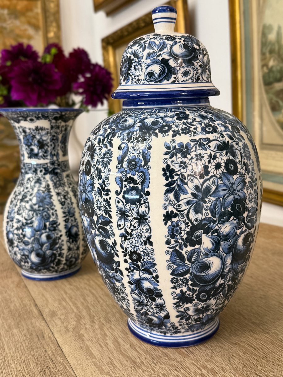 Vāze ar vāku – Augustums 35.5cm, platums ~17.5cm.