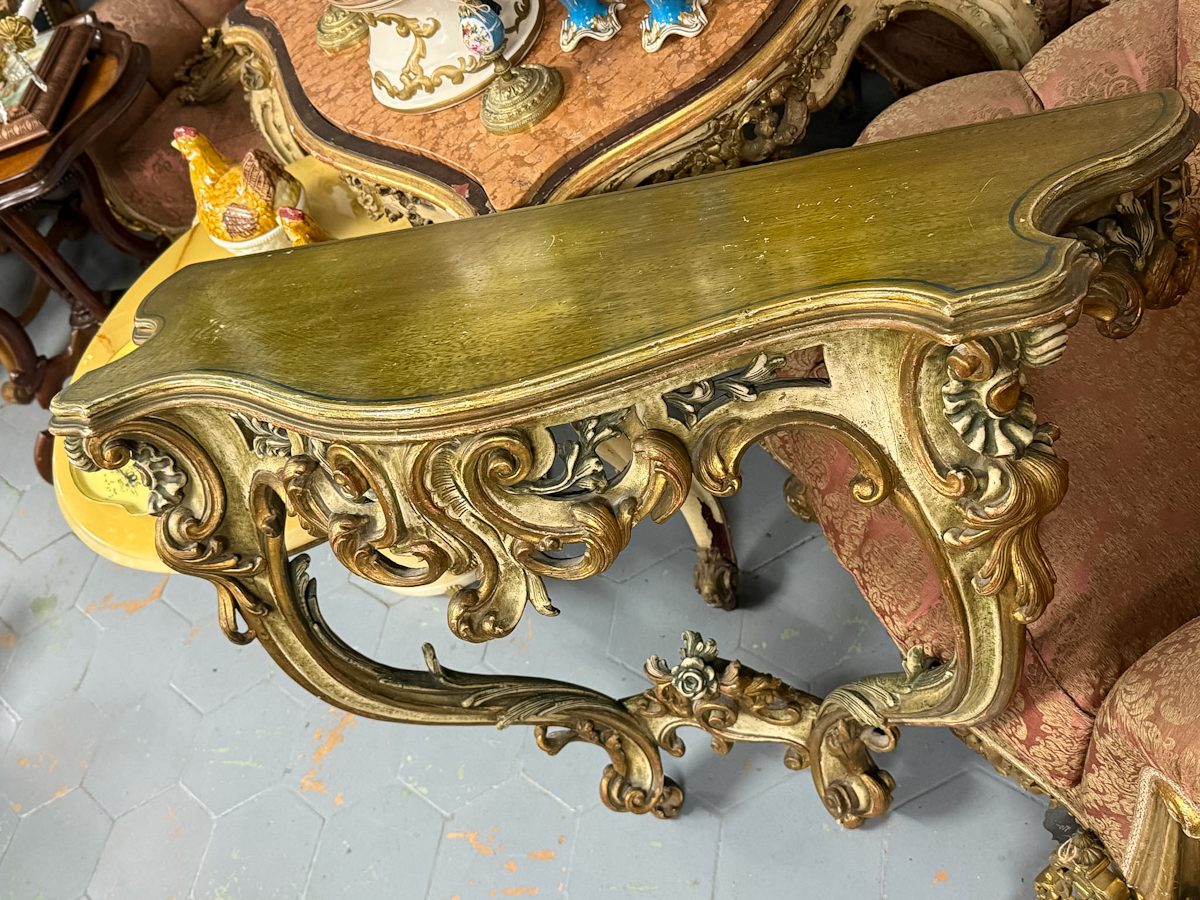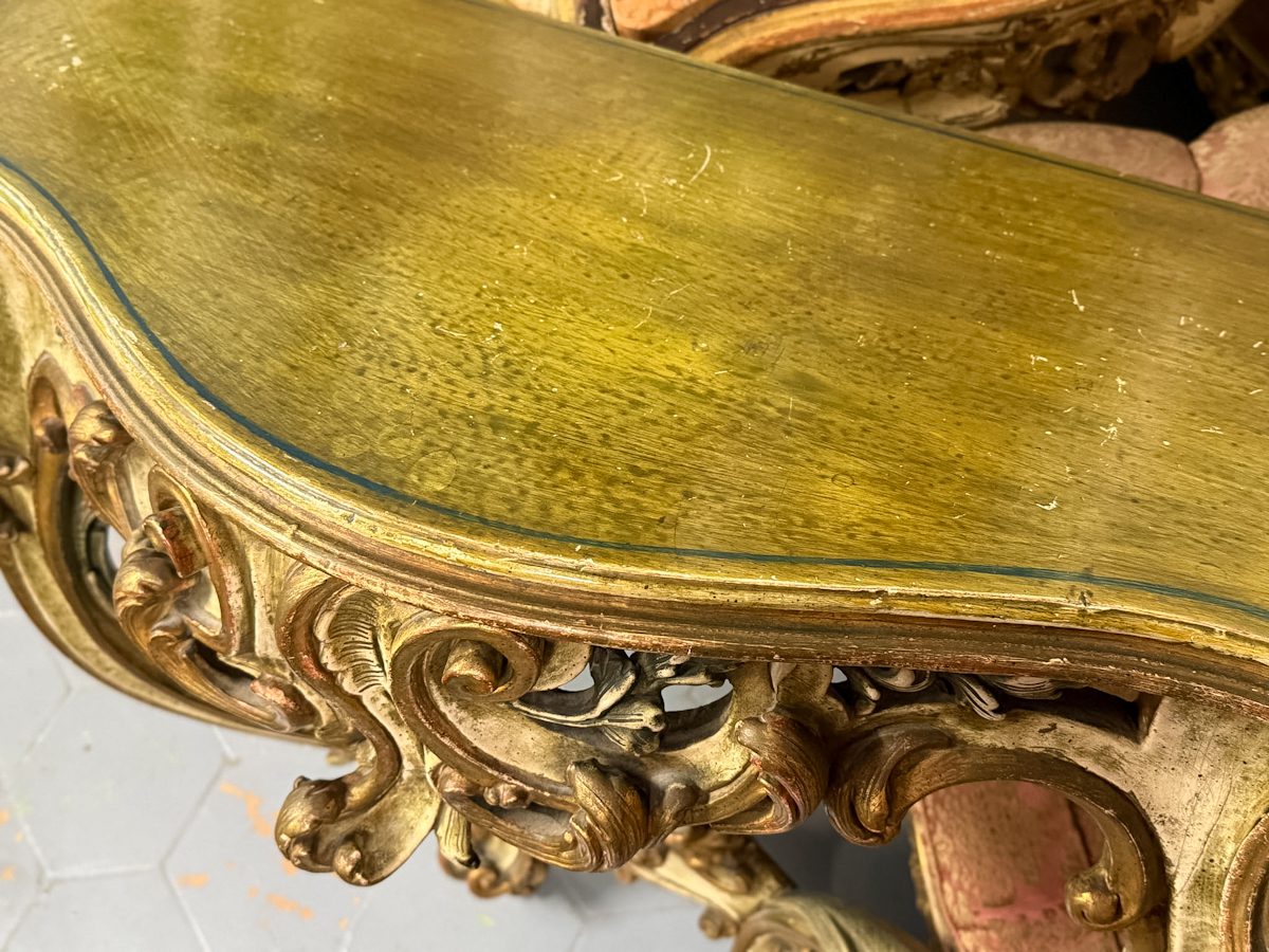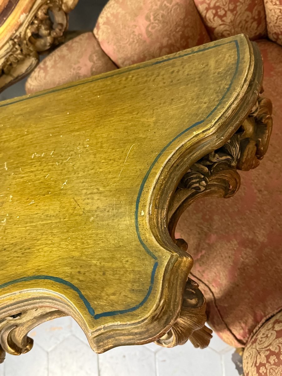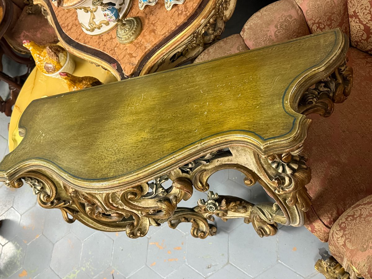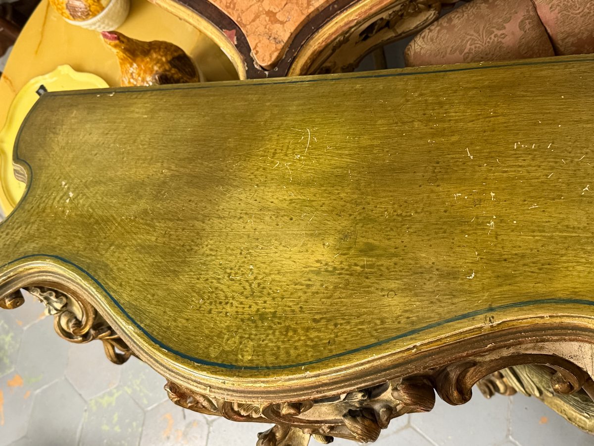 Konsole zaļganīgos toņos, stiprināma pie sienas, vidēji liela izmēra (6305)