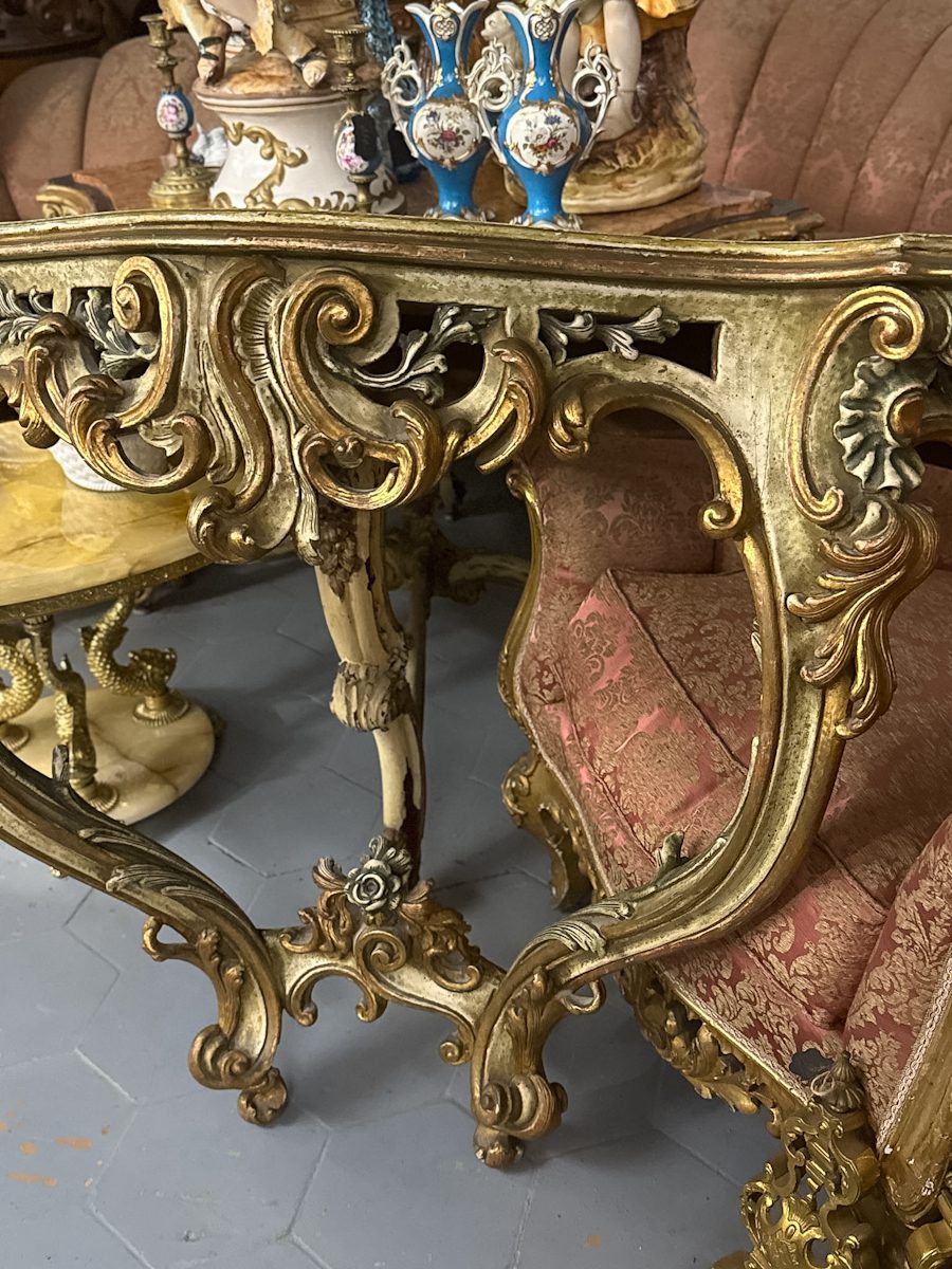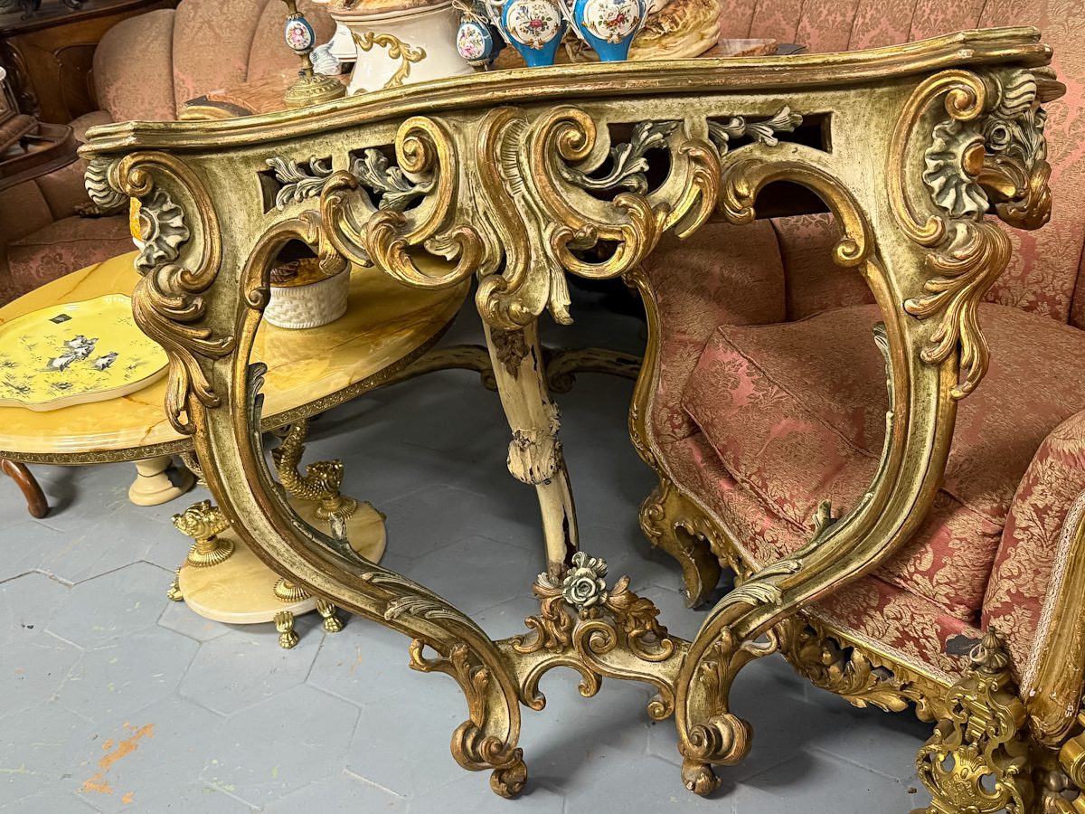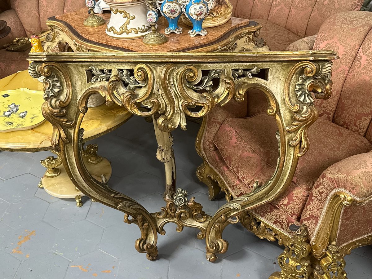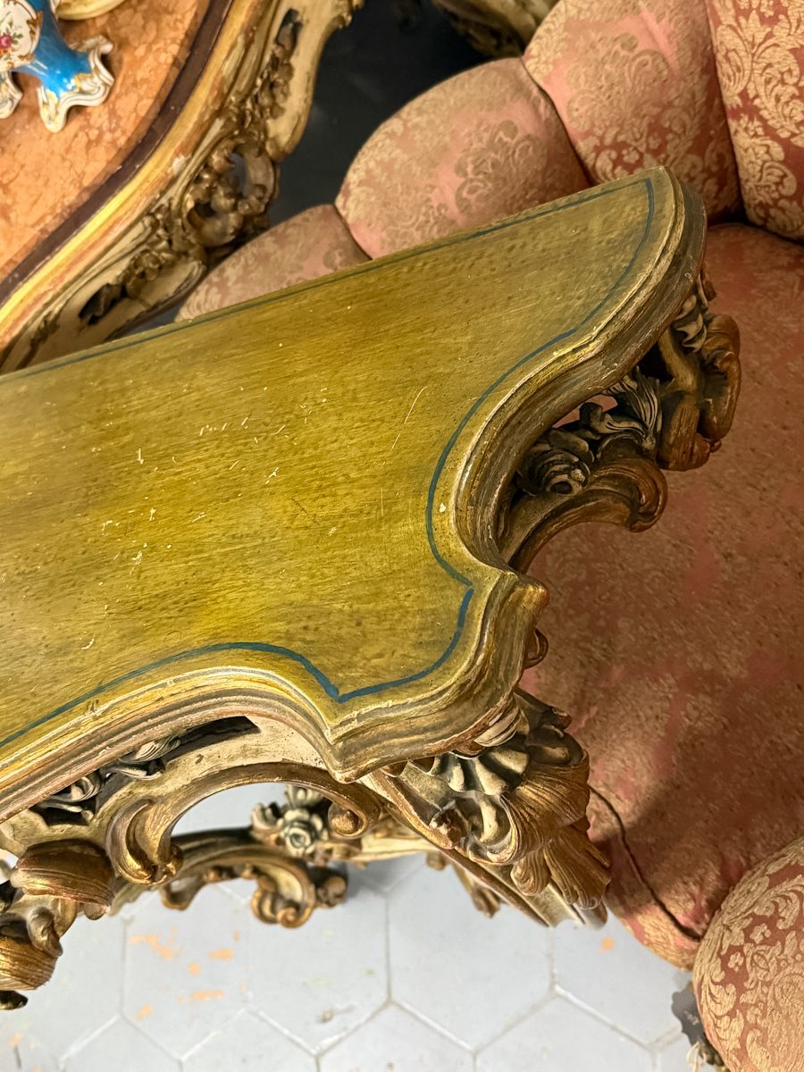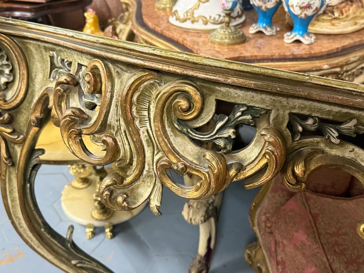 Konsole zaļganīgos toņos, stiprināma pie sienas, vidēji liela izmēra (6305)