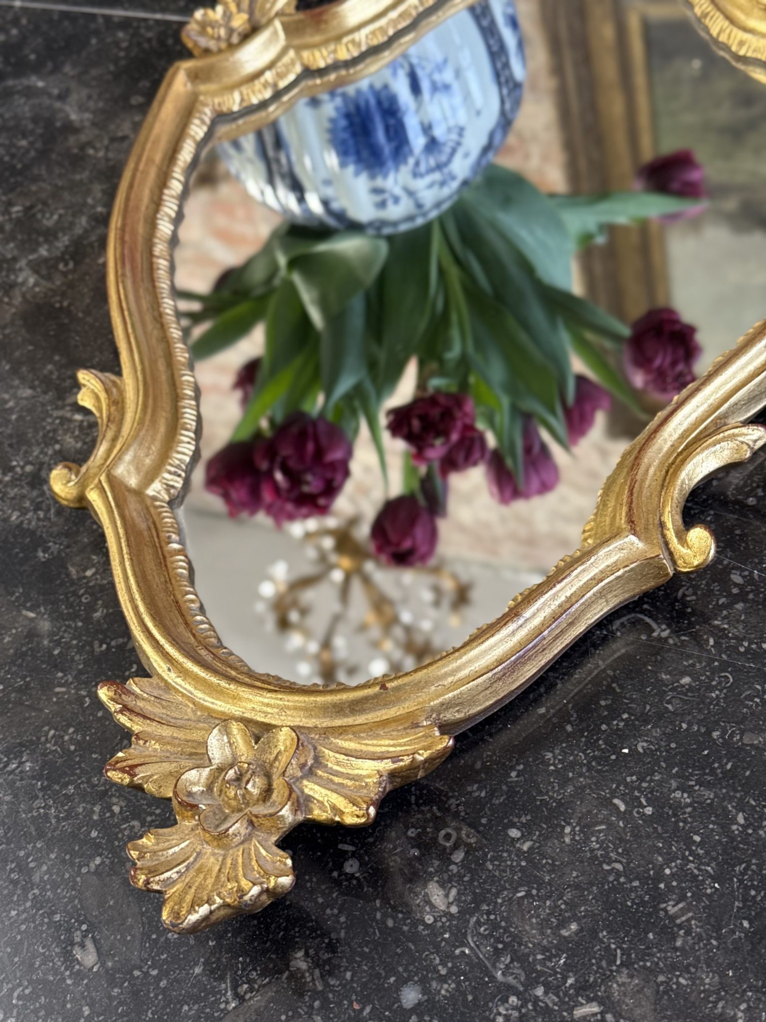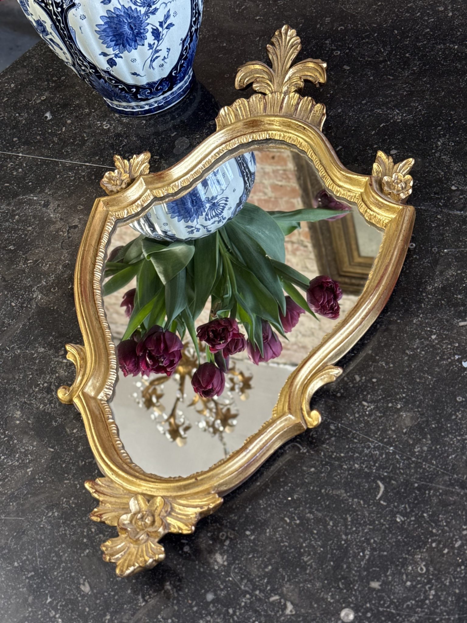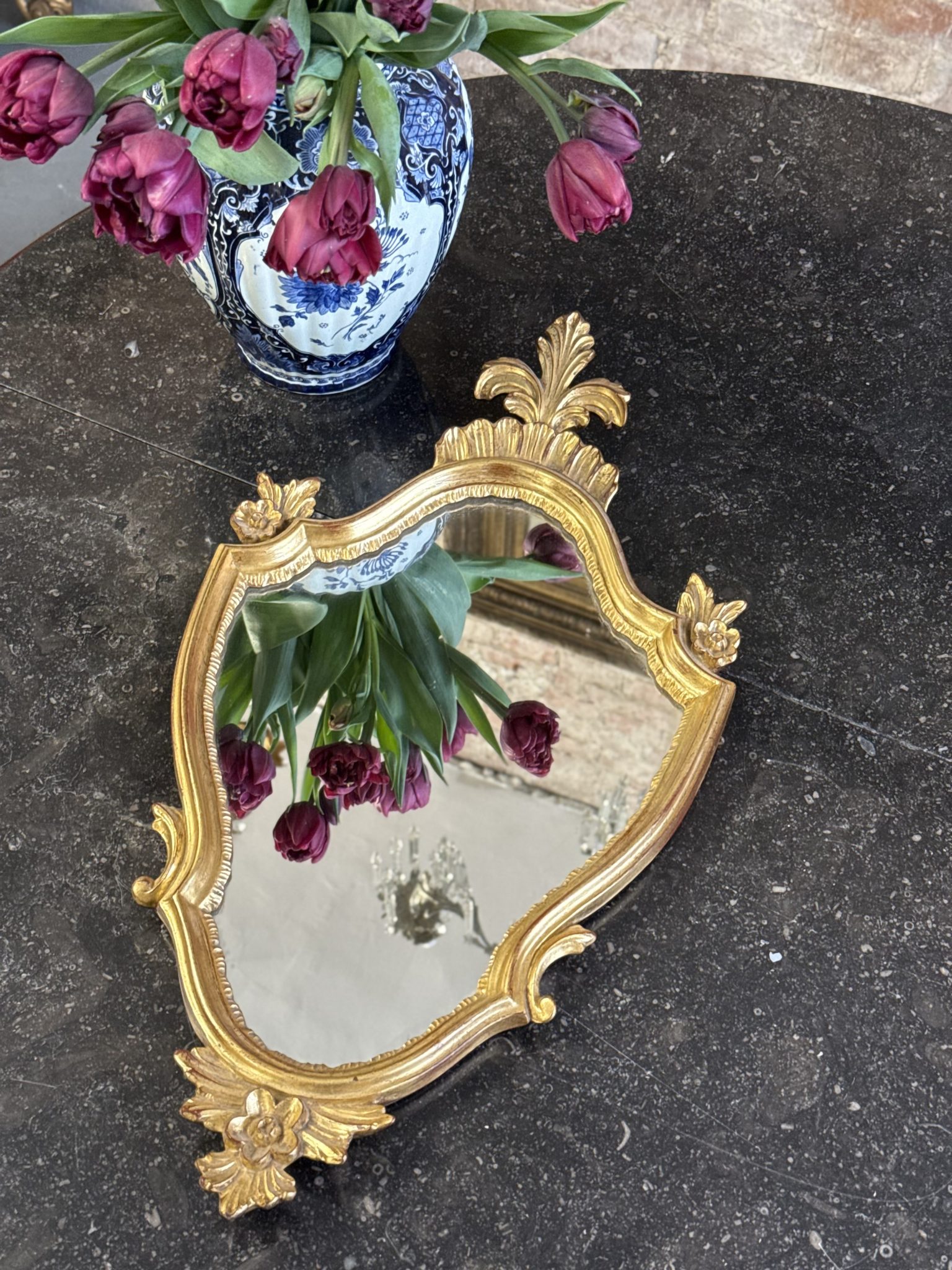 maza izmēra spogulis zelta krāsas rāmī, viegls pēc svara (6381)
