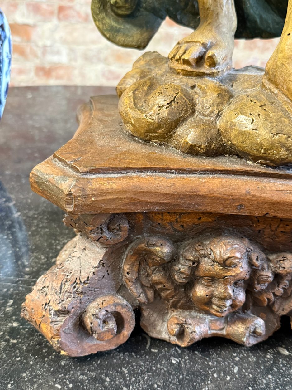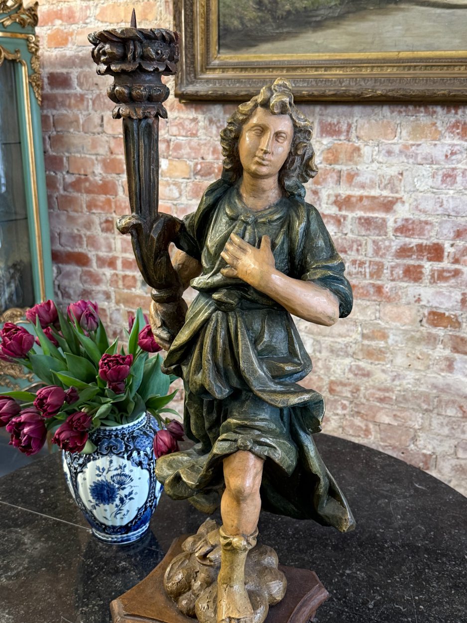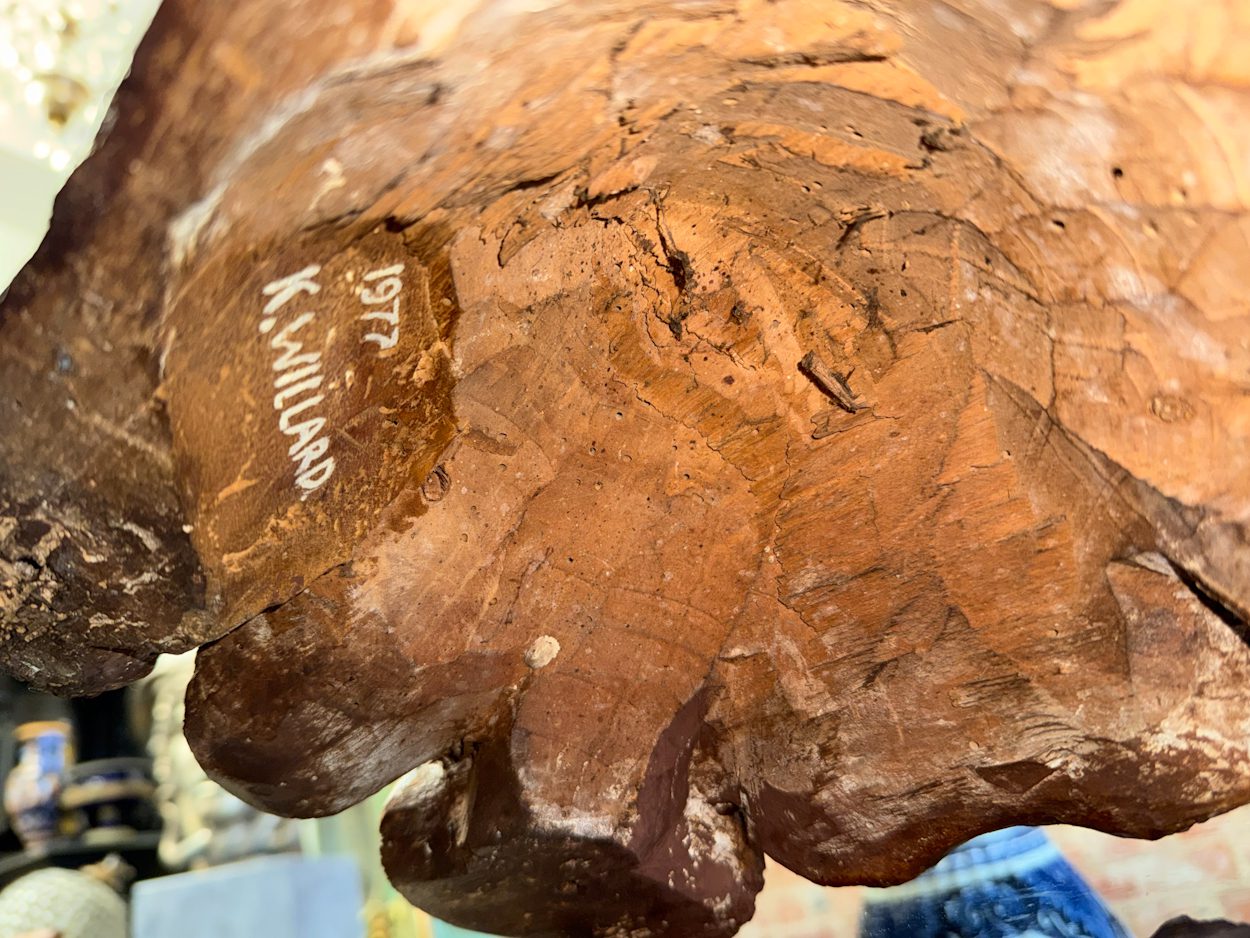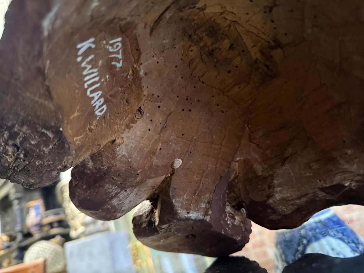 koka svečturis, liekams uz galda, podesta, ar parakstu – 1977 K.WILLARD, vidēji liela izmēra (6388)