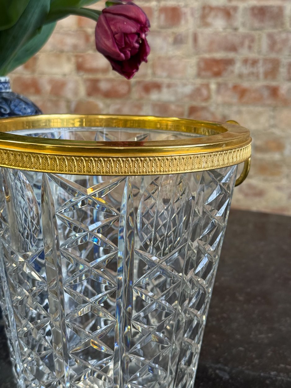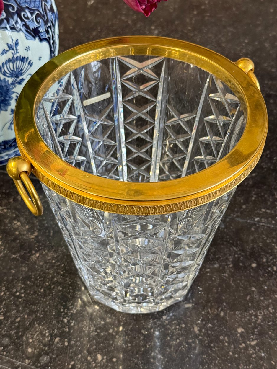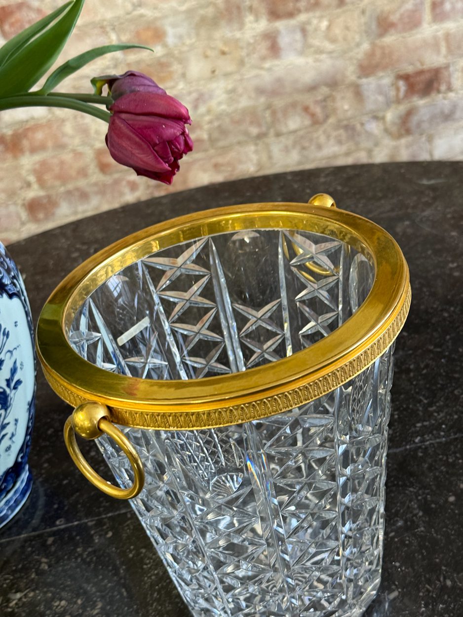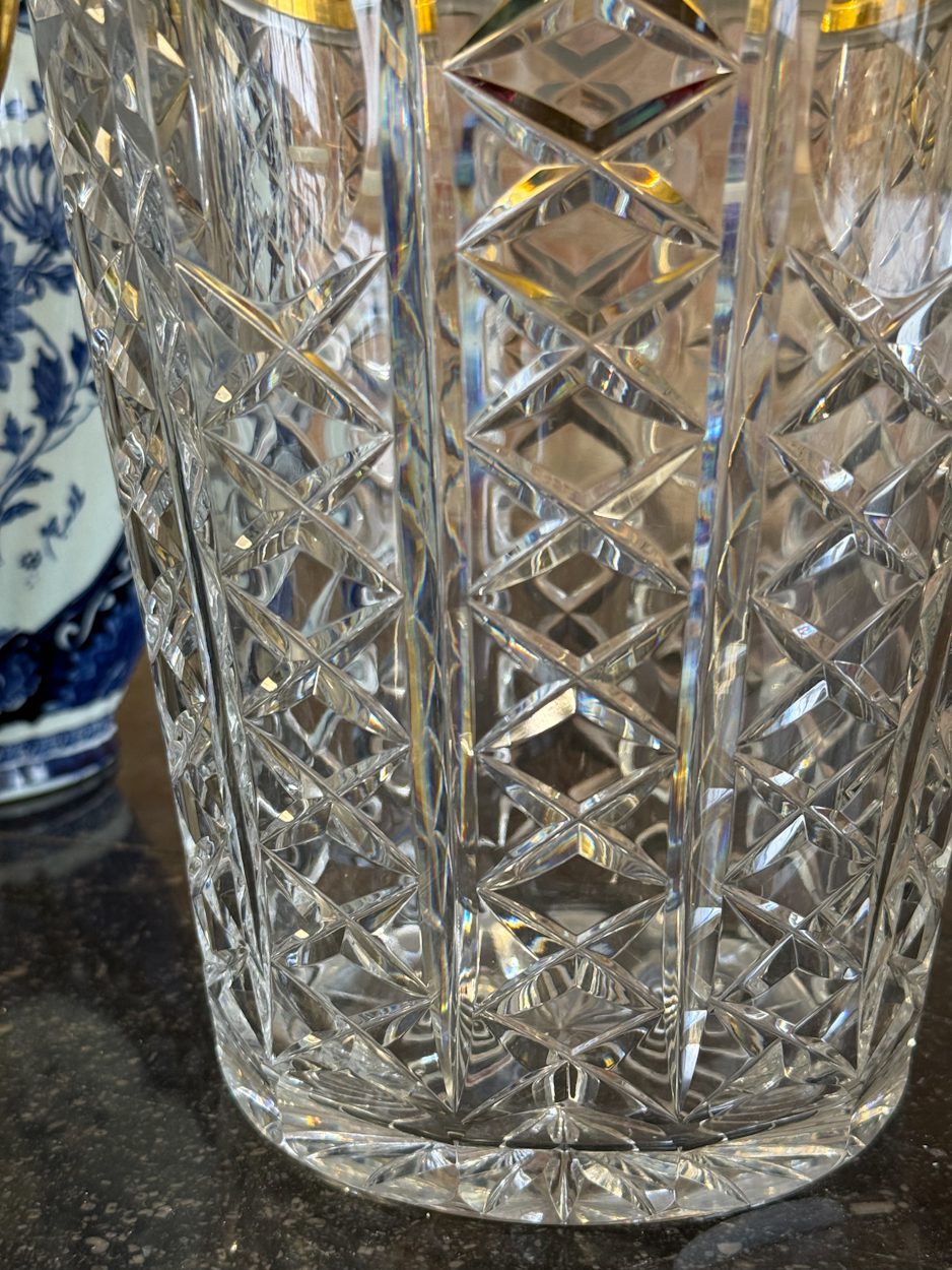 kristāla šampanieša trauks ar zelta krāsas detalizāciju, vidēja izmēra, vidēji smags (6394)