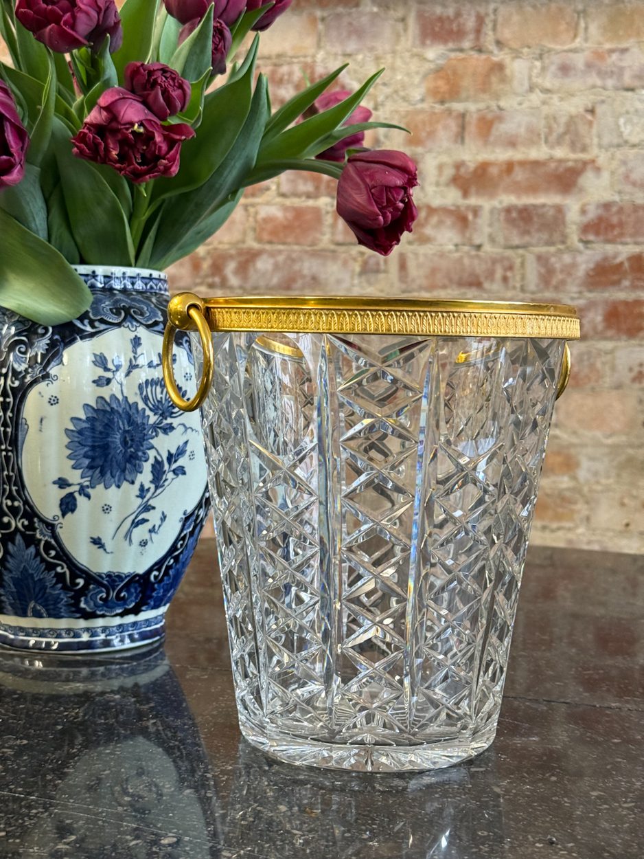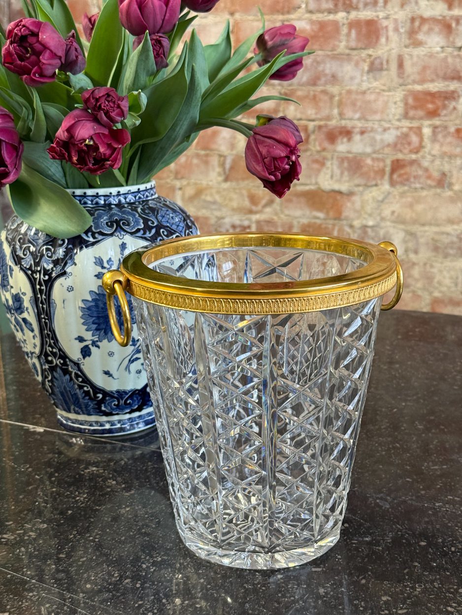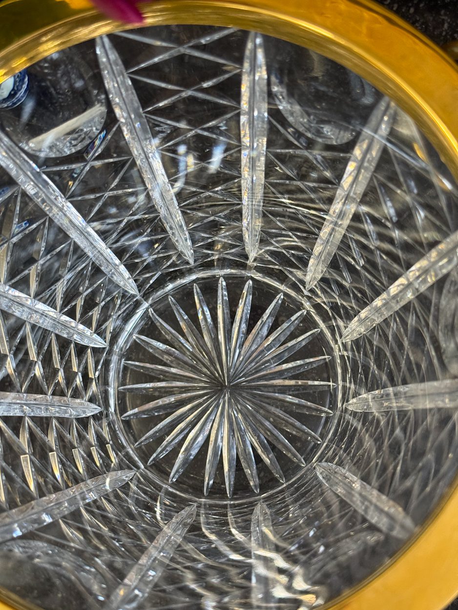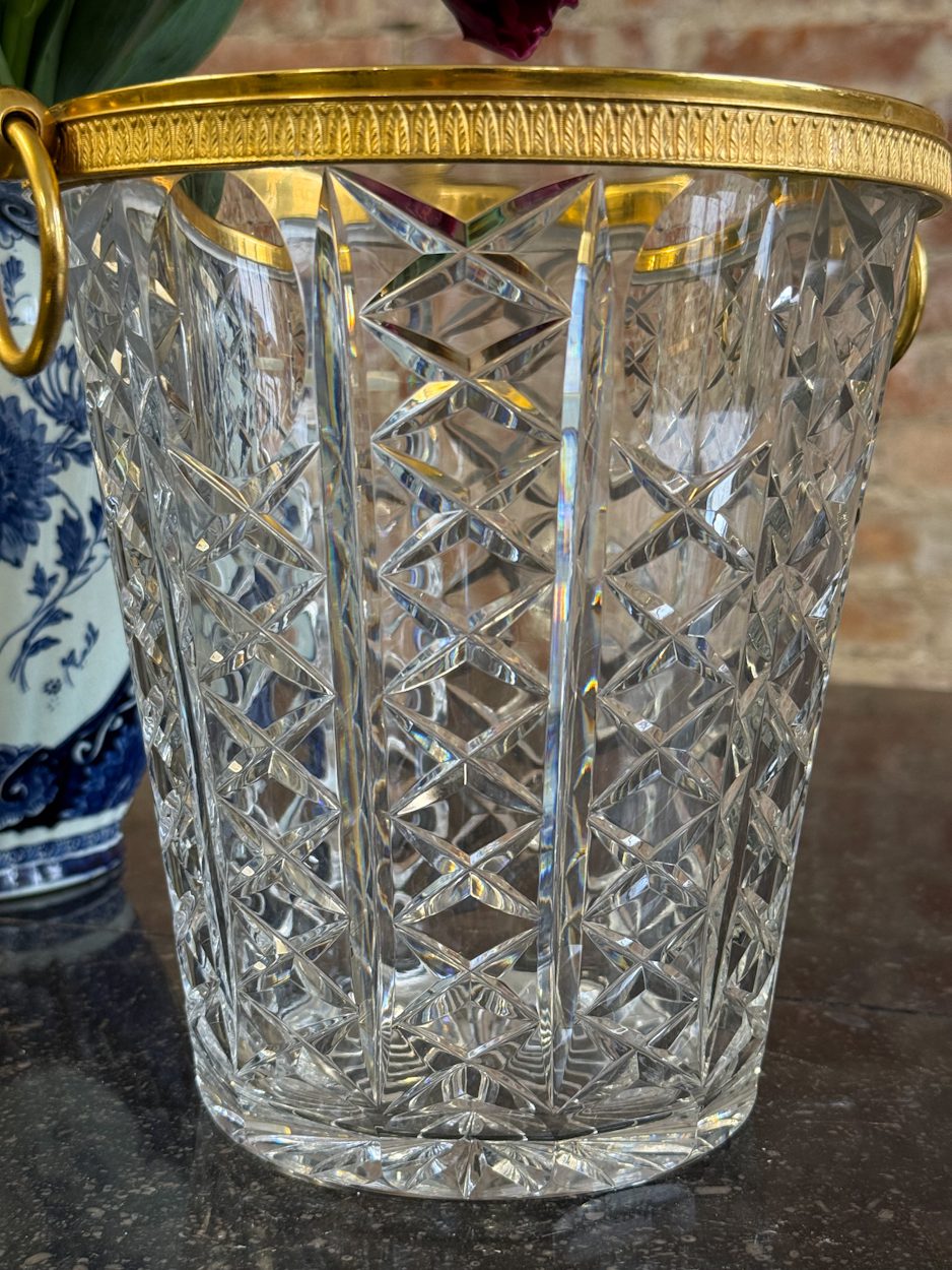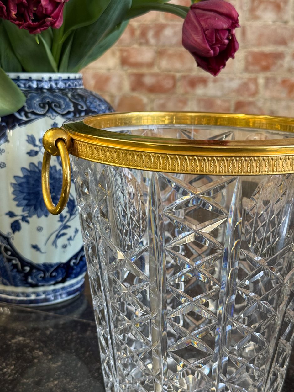 kristāla šampanieša trauks ar zelta krāsas detalizāciju, vidēja izmēra, vidēji smags (6394)