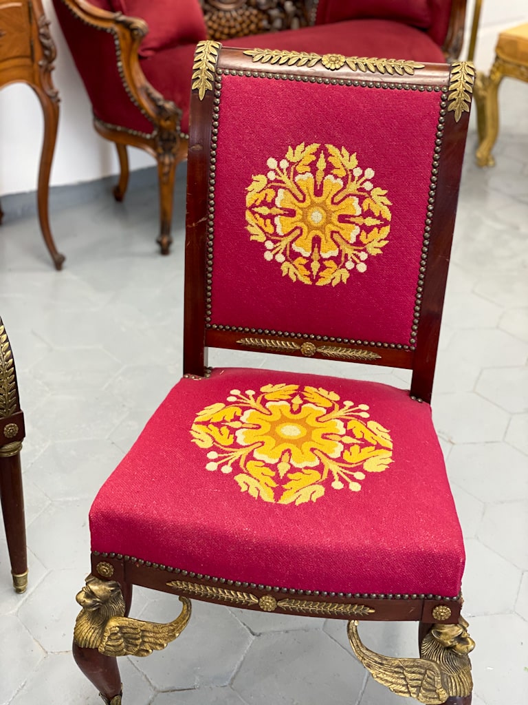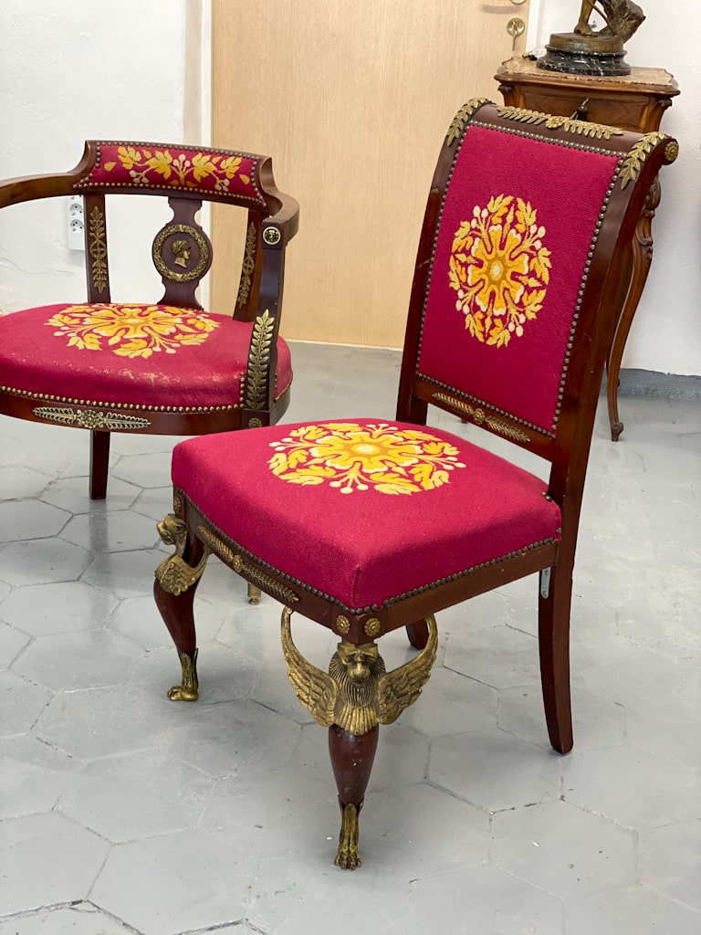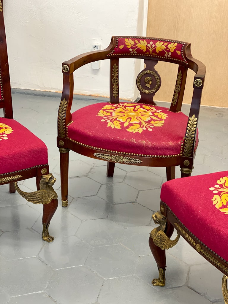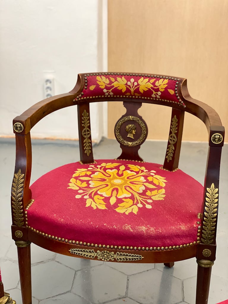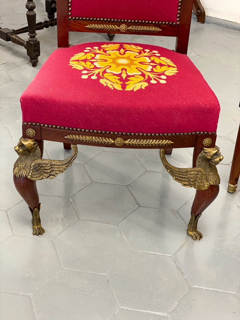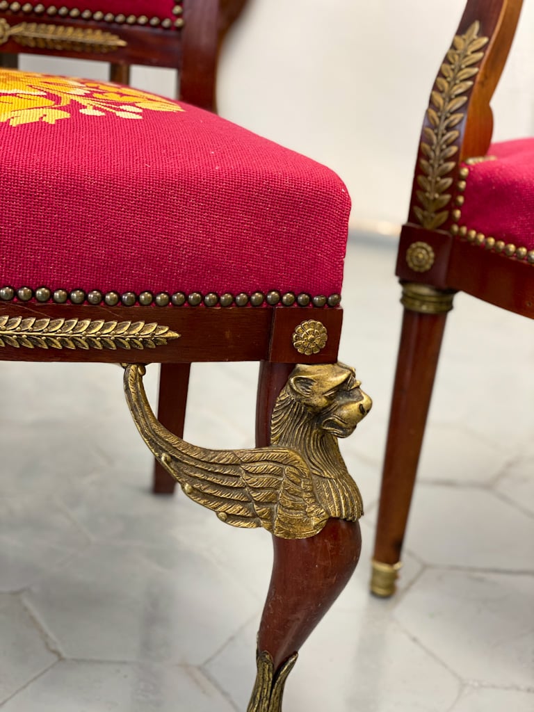 Amoīra stila Krēsli ar gobelēna audumu, bronzas grifa detaļām, ļoti smagi, 3gab (720)