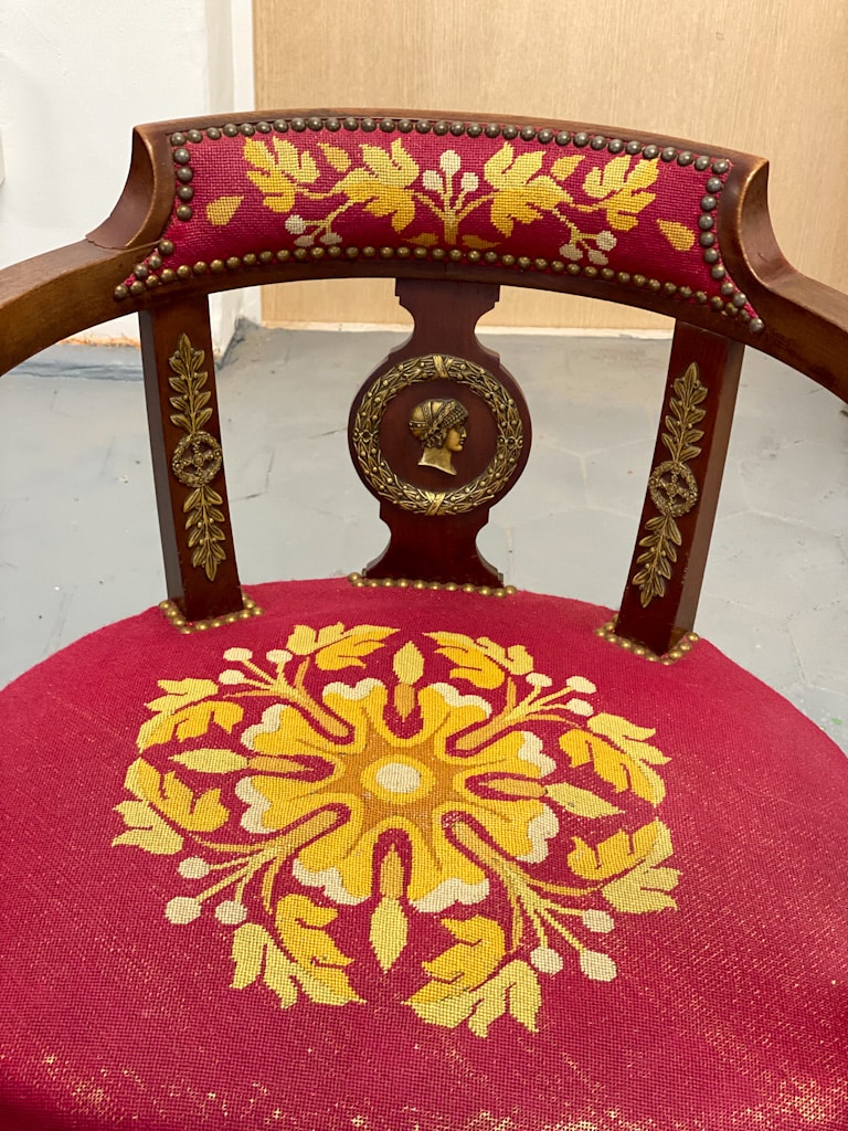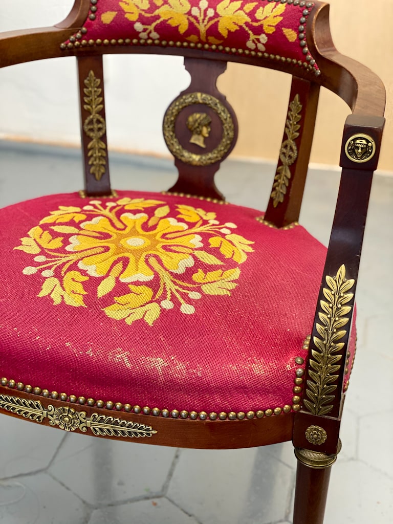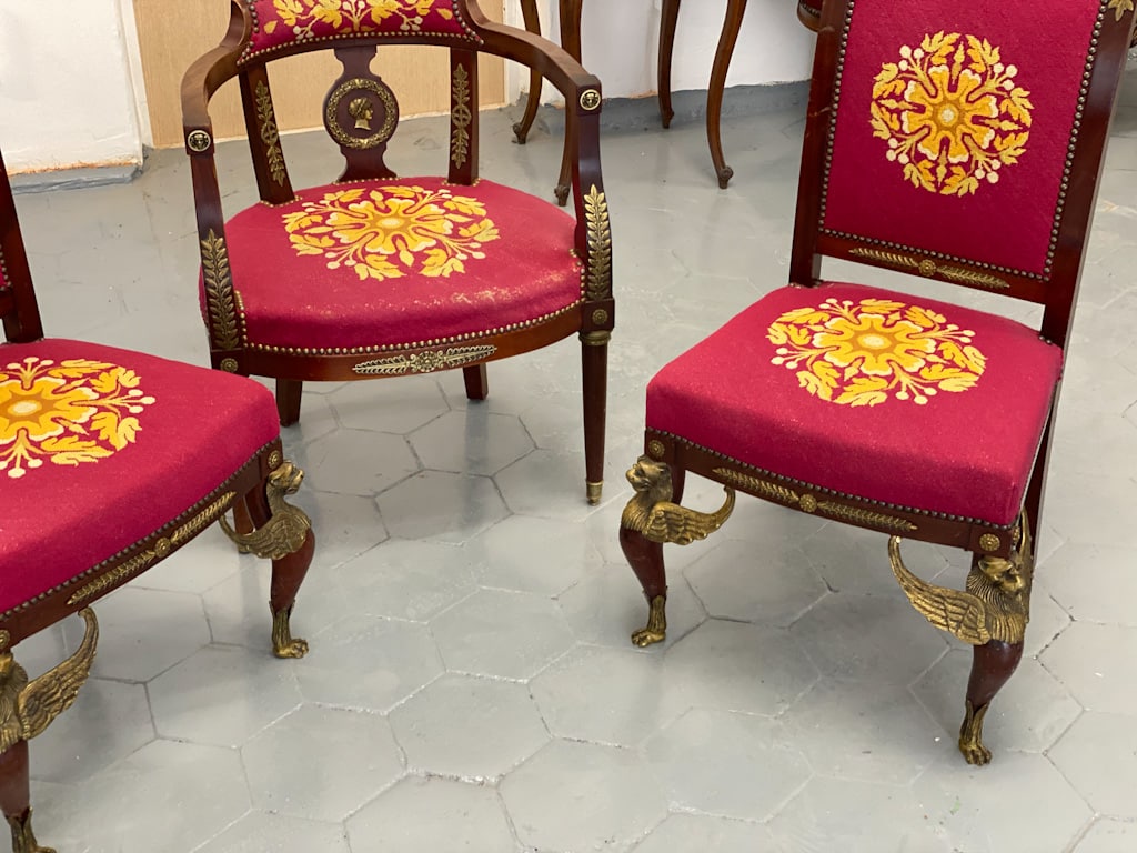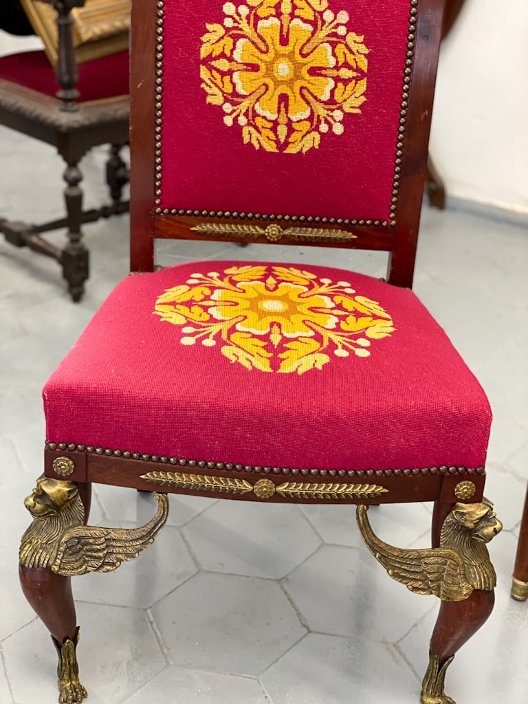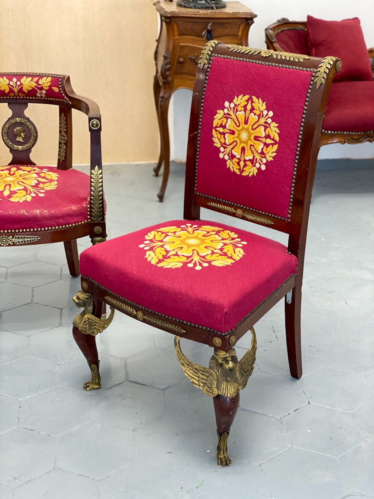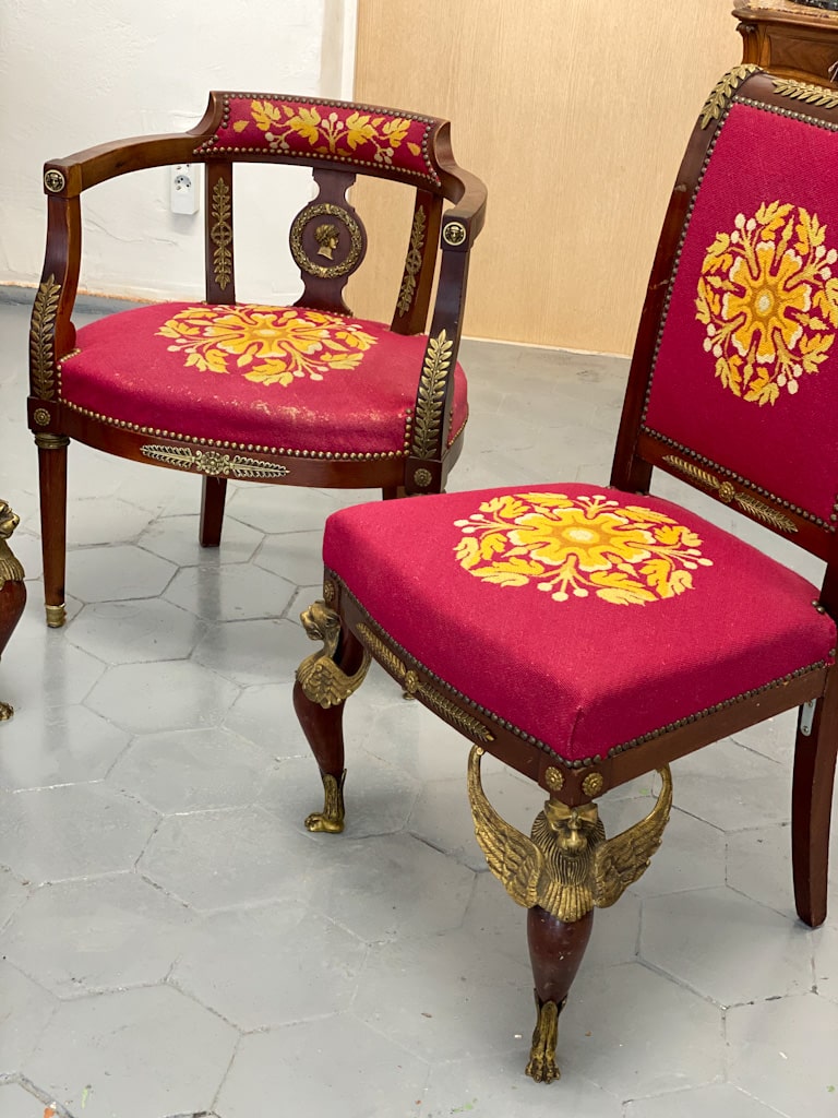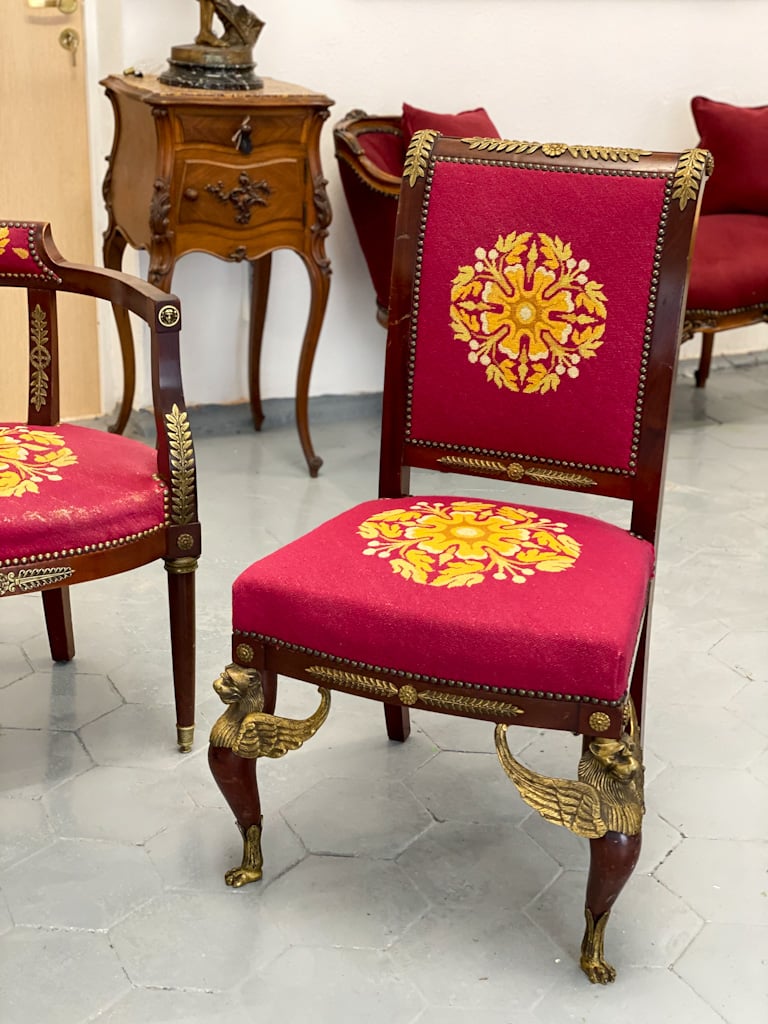 Amoīra stila Krēsli ar gobelēna audumu, bronzas grifa detaļām, ļoti smagi, 3gab (720)