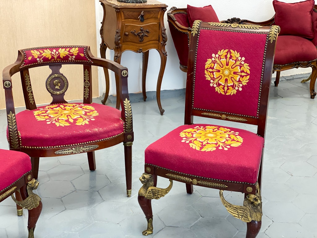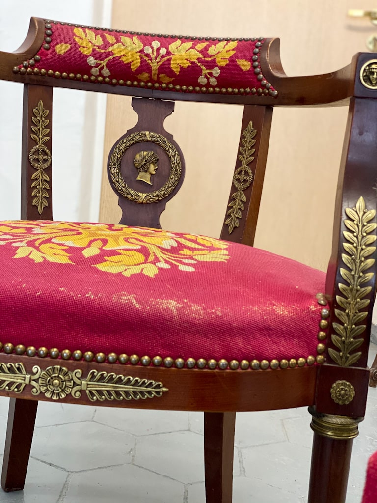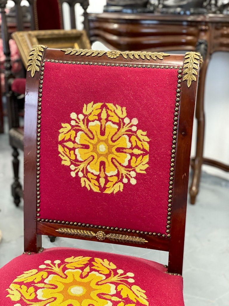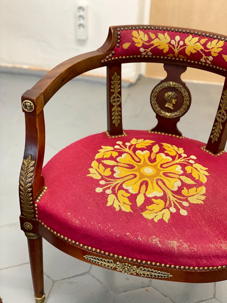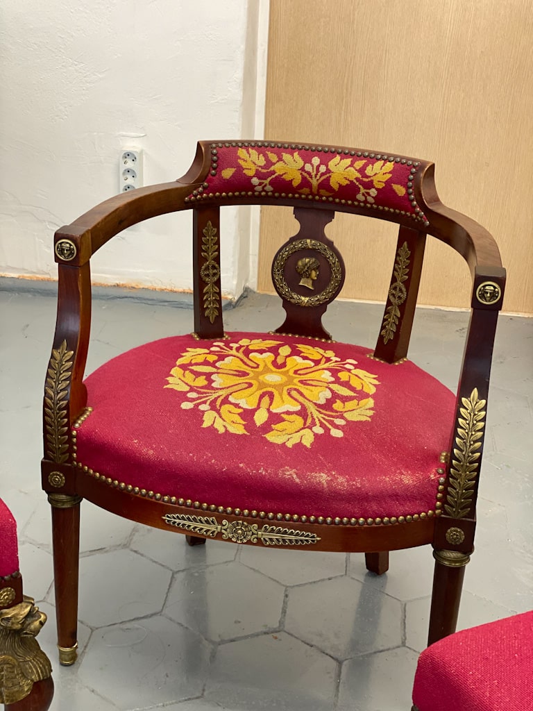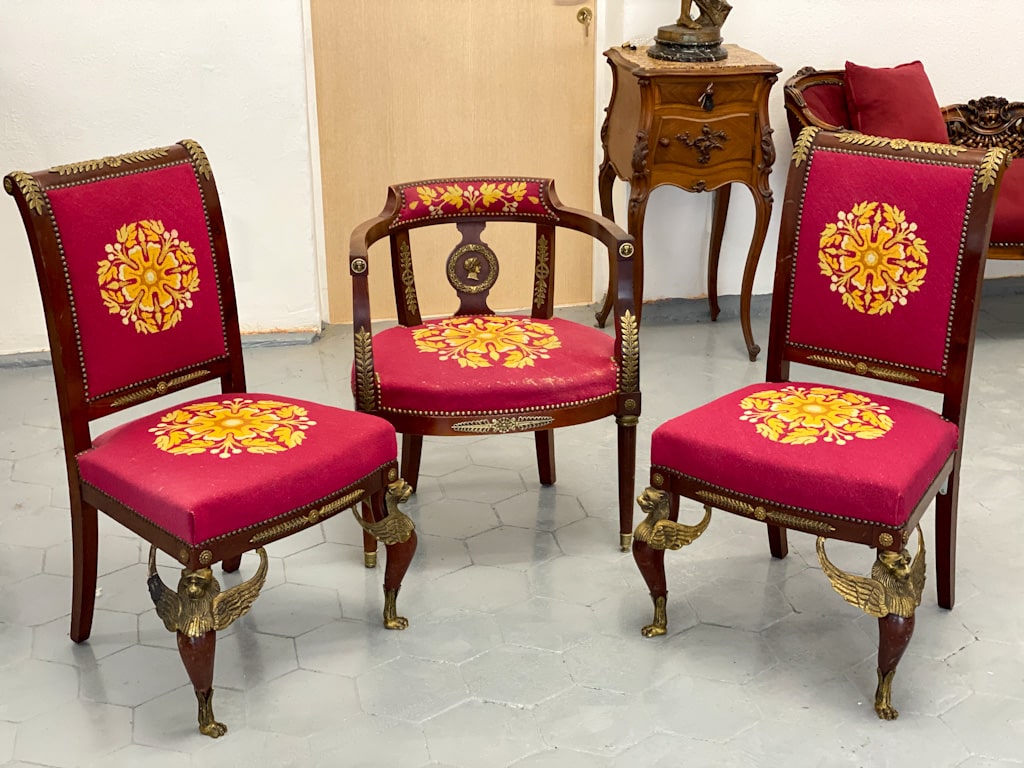 Amoīra stila Krēsli ar gobelēna audumu, bronzas grifa detaļām, ļoti smagi, 3gab (720)