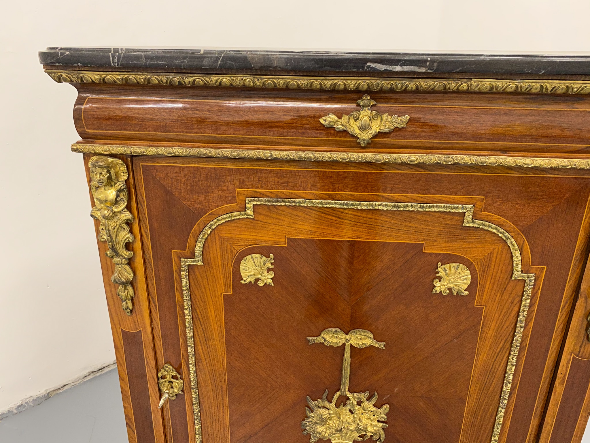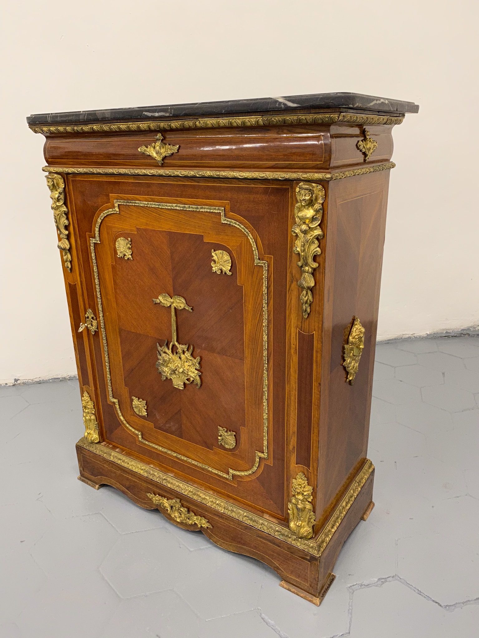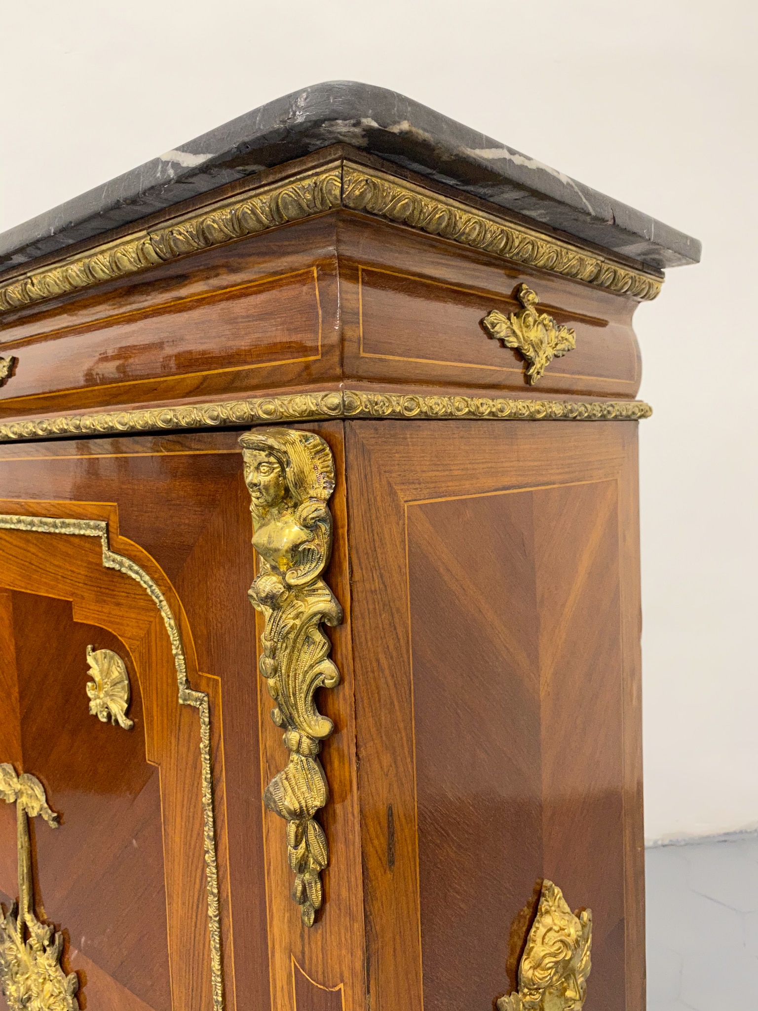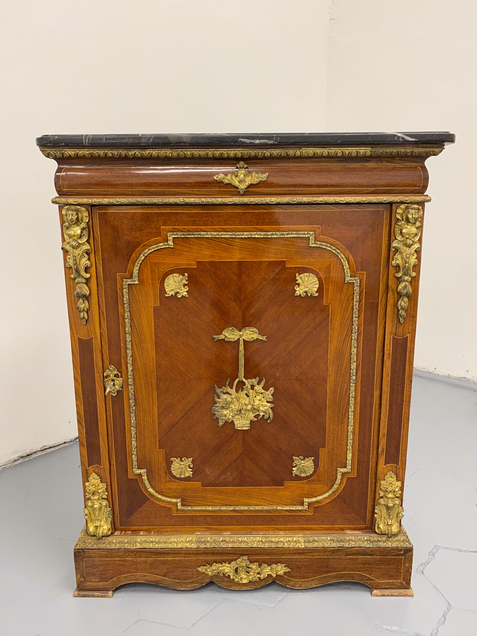 Grezna, koka kumode ar bronzas detaļām un marmora virsmu (2281)