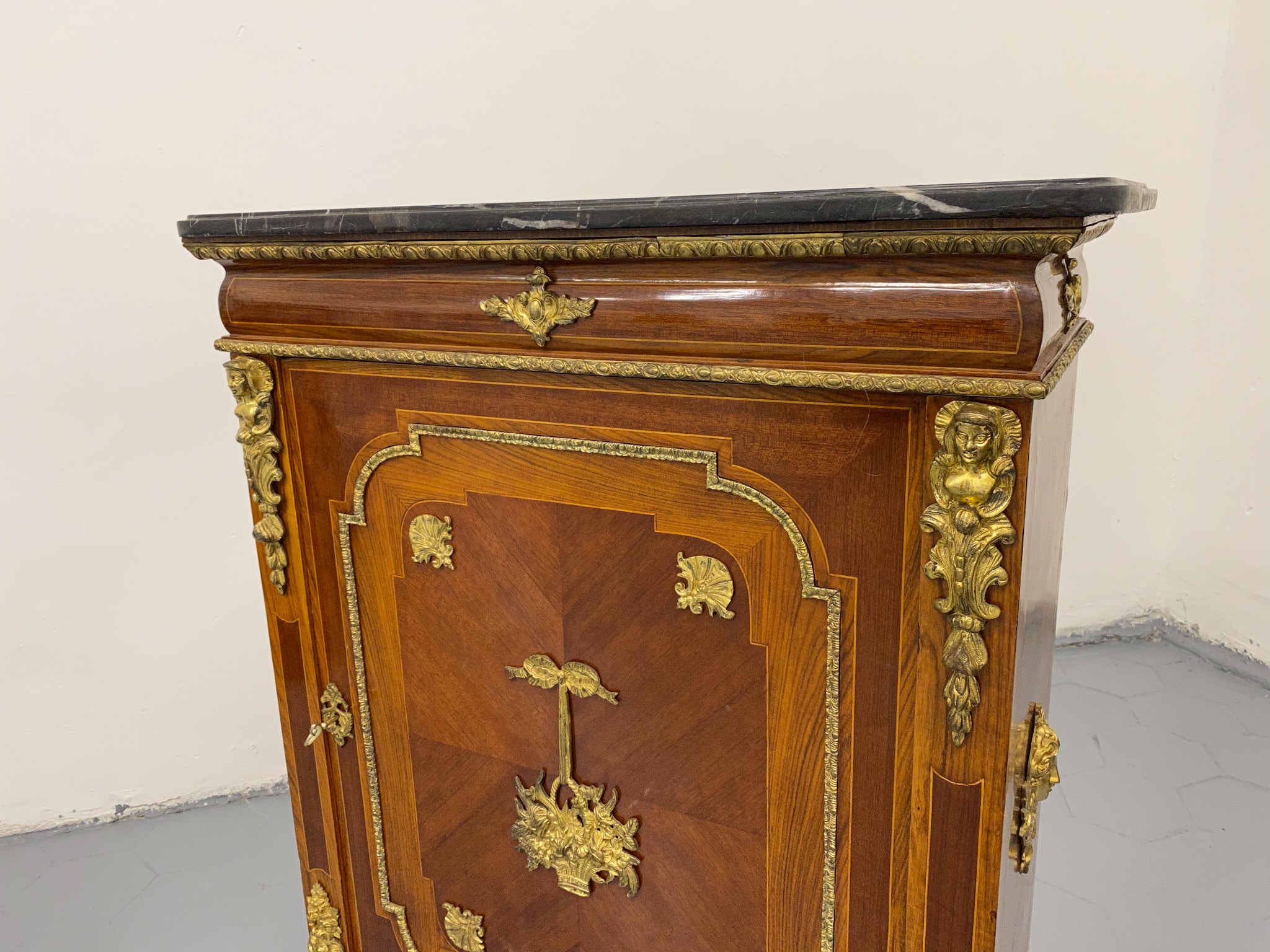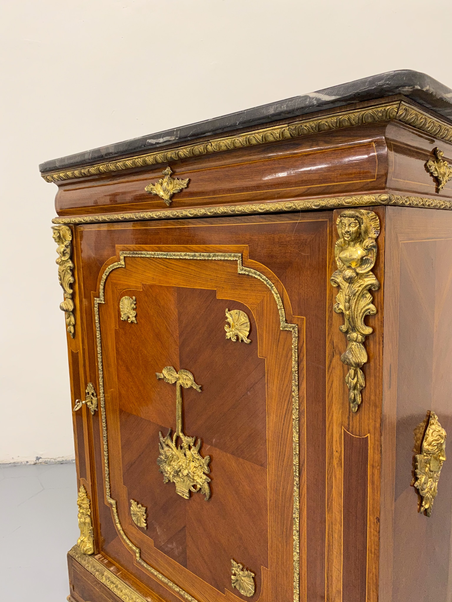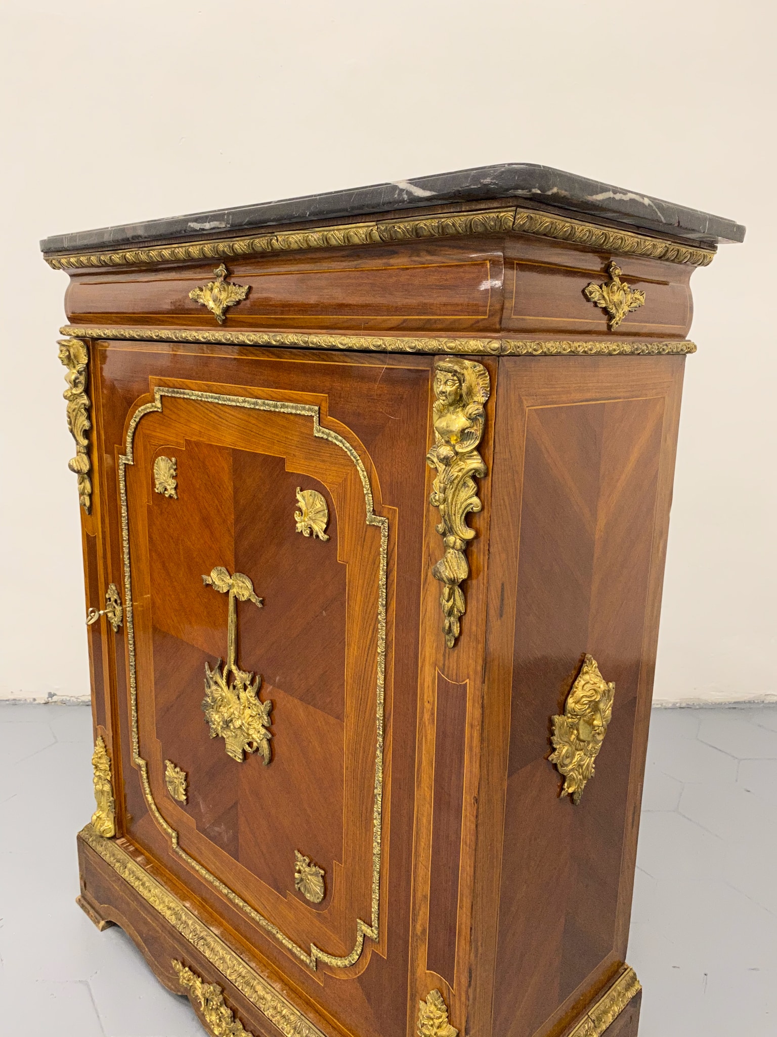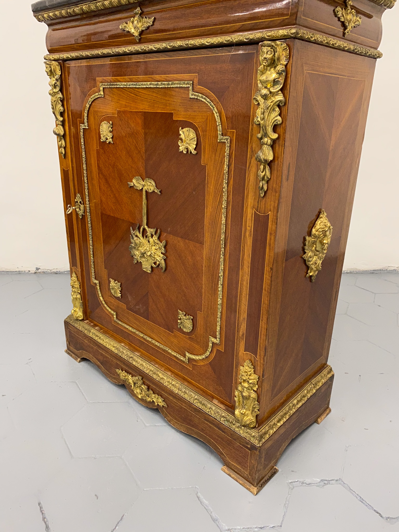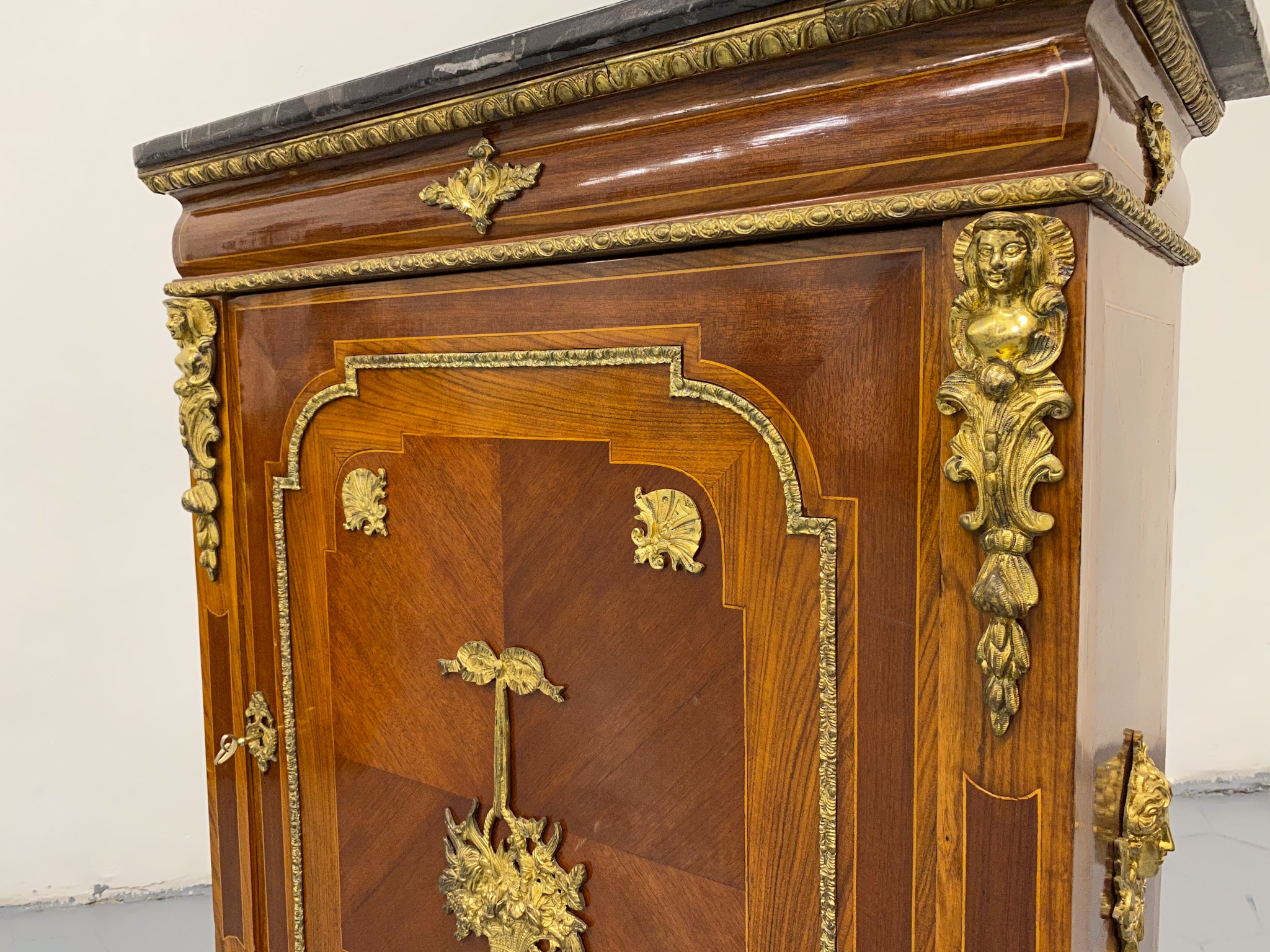 Grezna, koka kumode ar bronzas detaļām un marmora virsmu (2281)