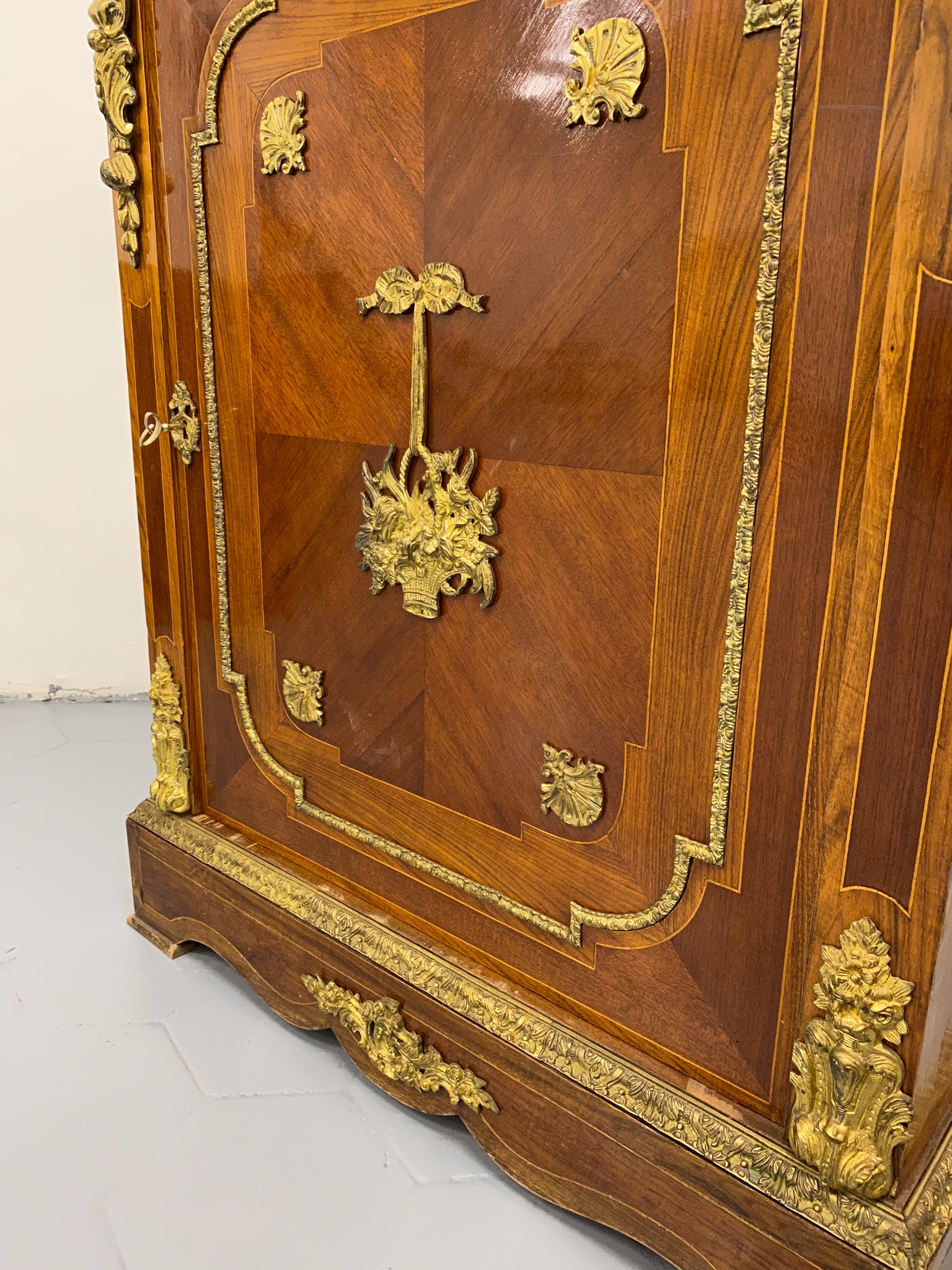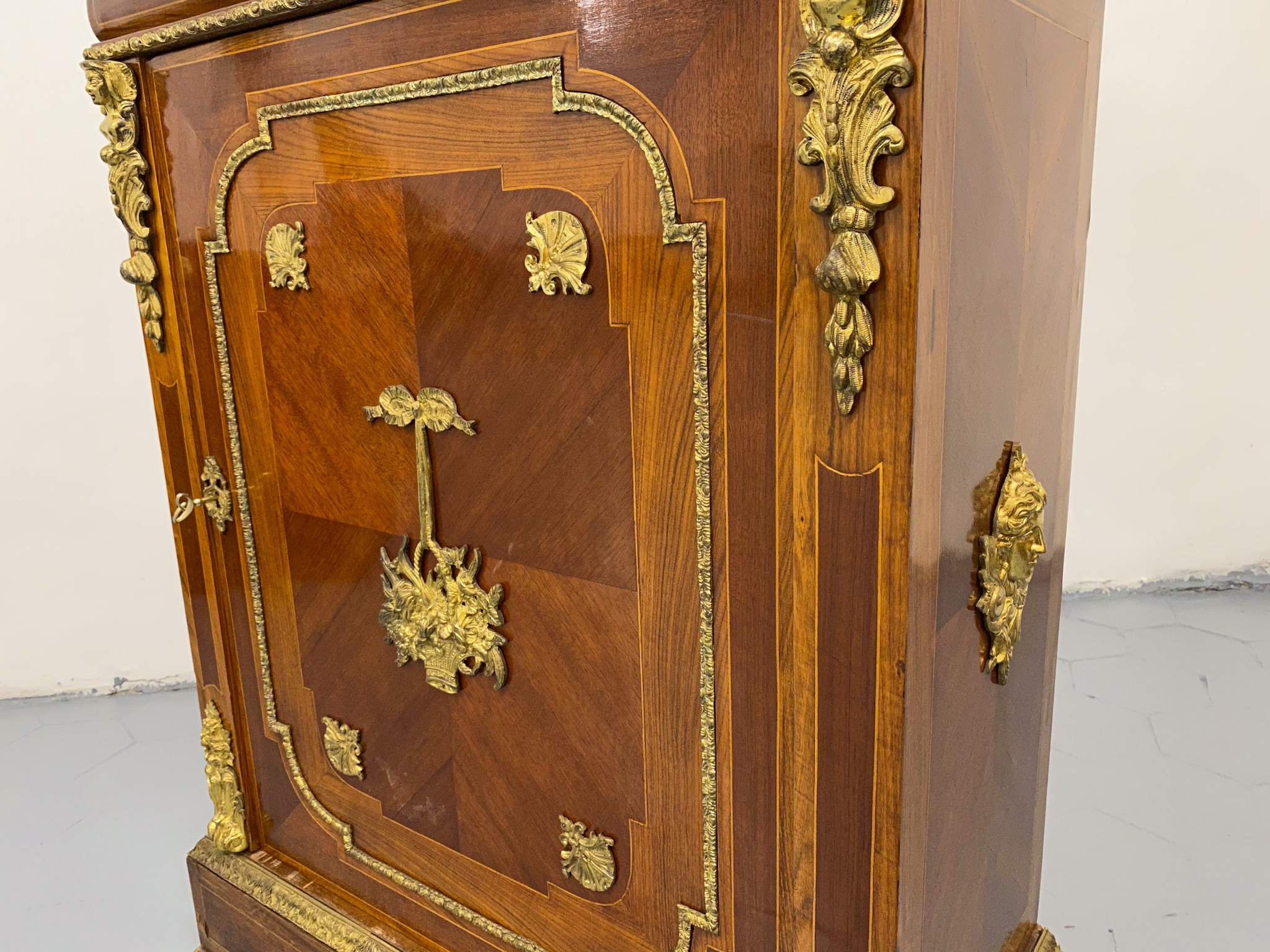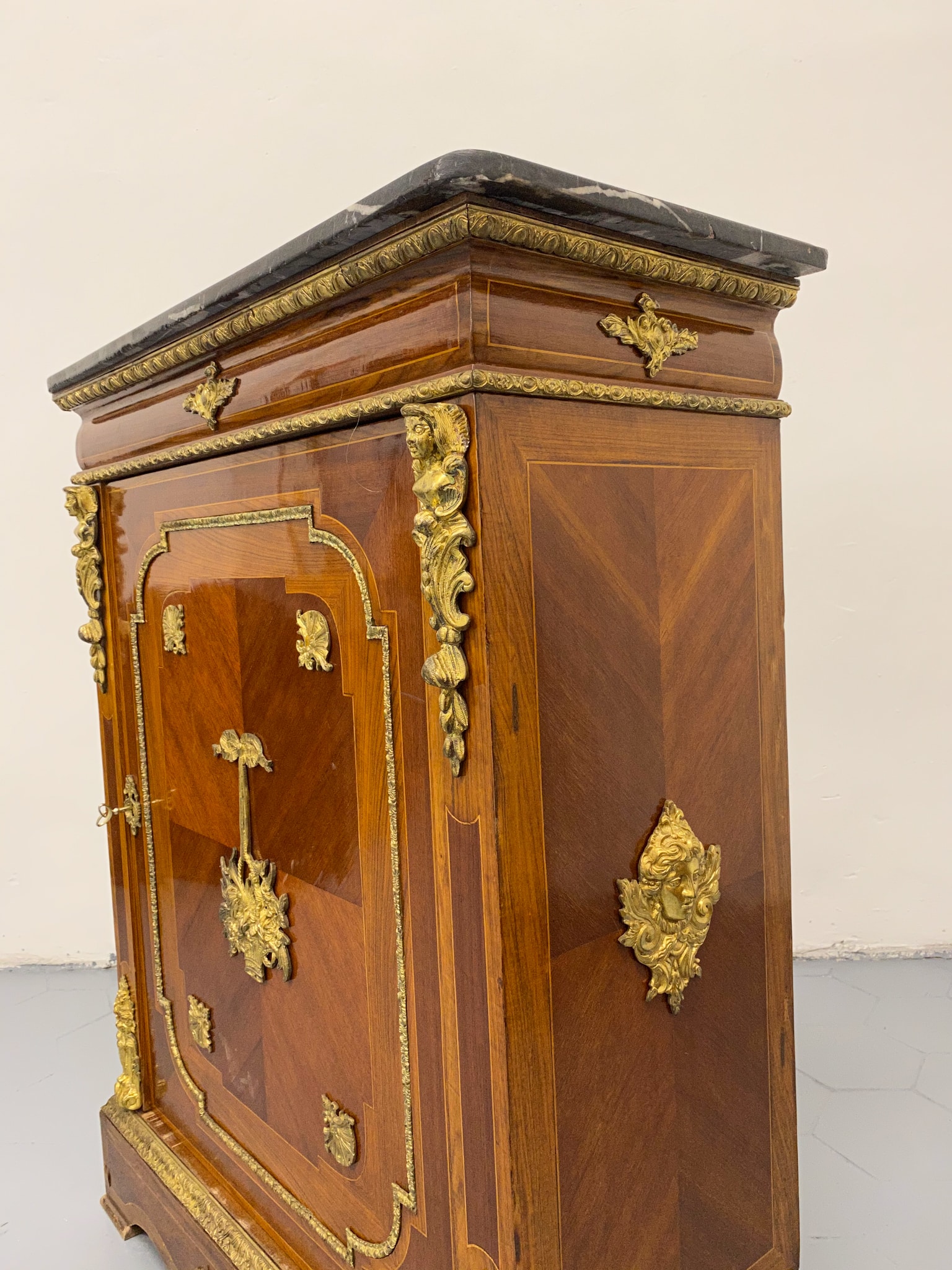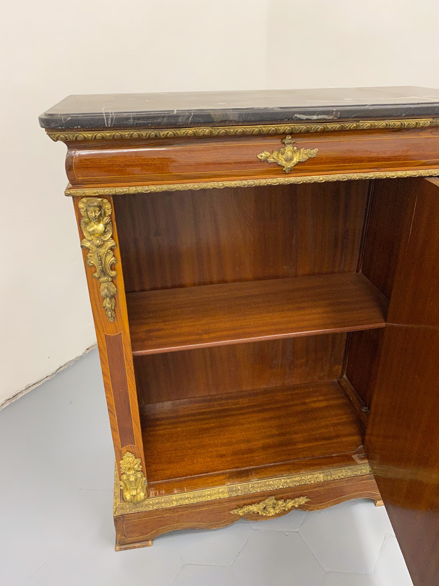 Grezna, koka kumode ar bronzas detaļām un marmora virsmu (2281)