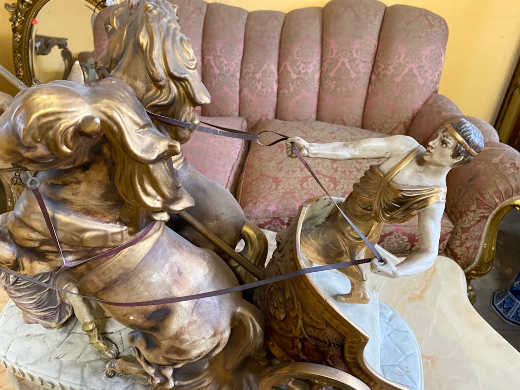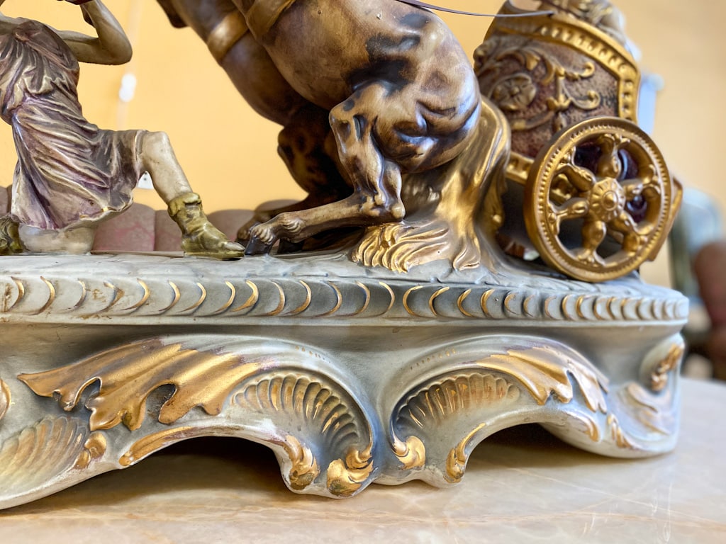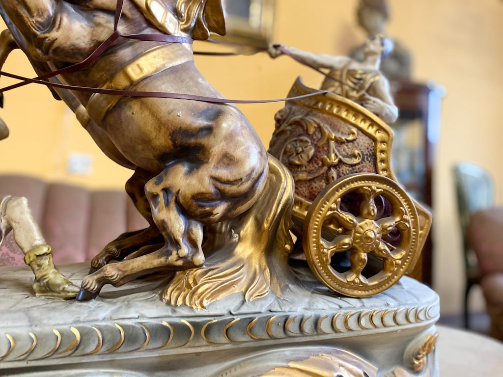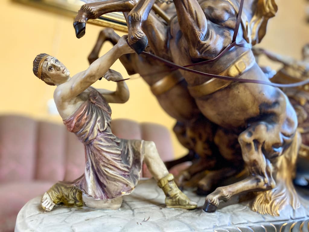 Liela, porcelāna figūra ar zirgiem un zelta krāsas detalizāciju (675)