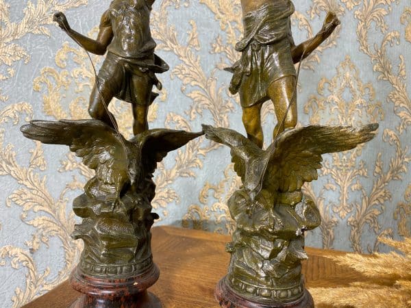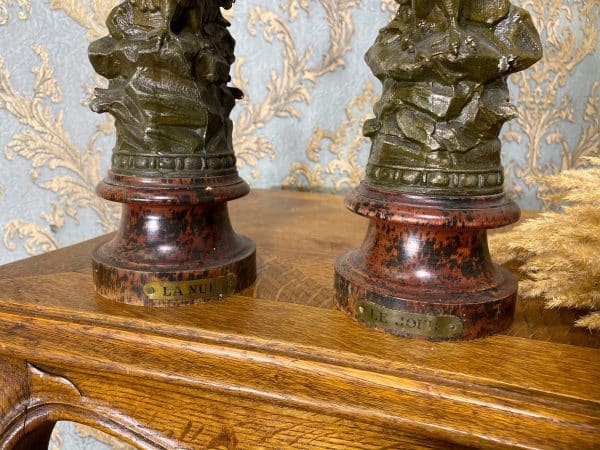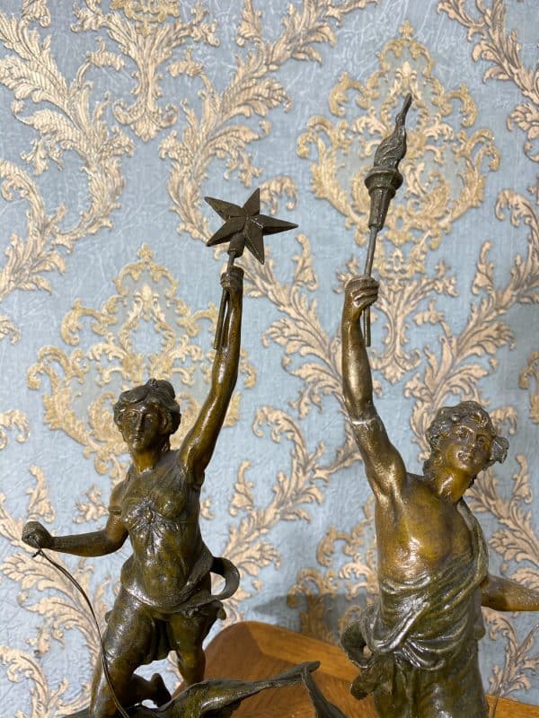 Speltera figūru pāris, sieviete un vīrietis ar ērgli, “LA NUIT”, “LE JOUIR” (384)