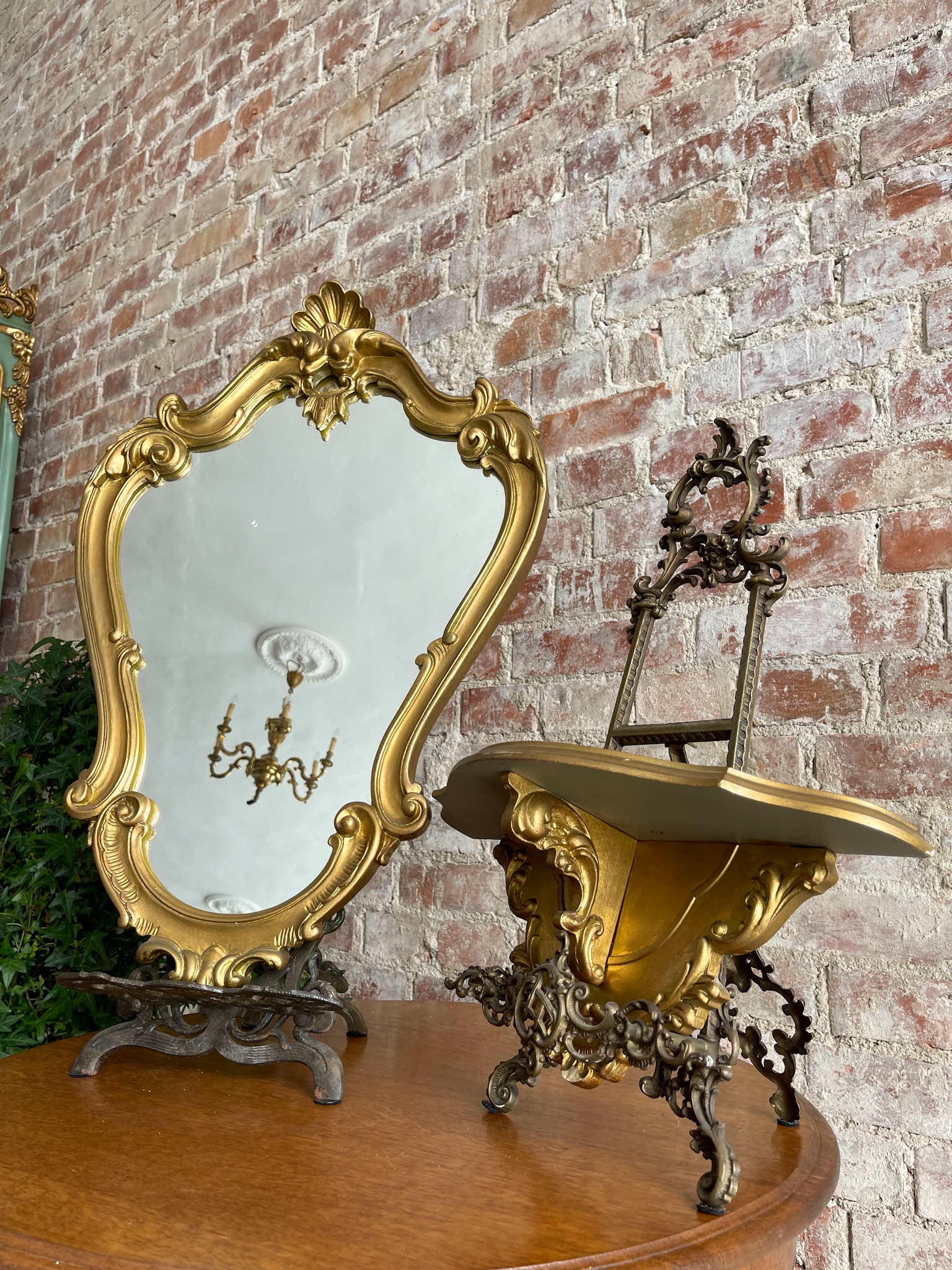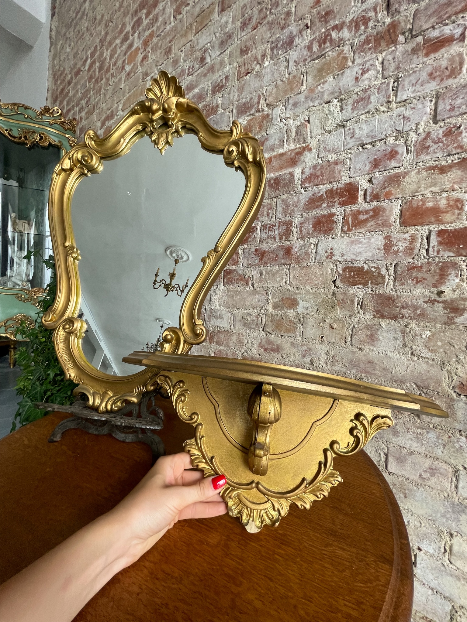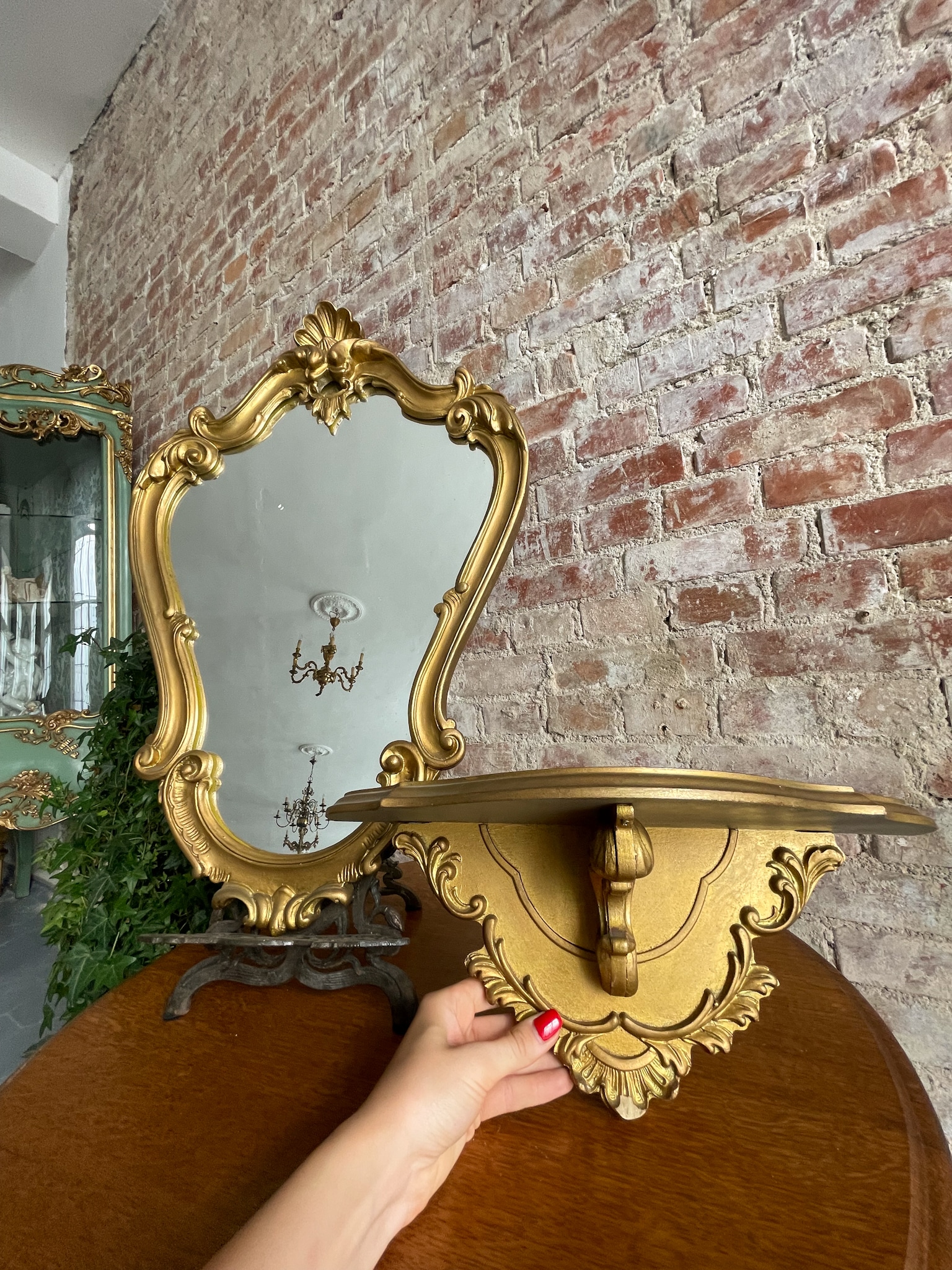 Zelta krāsas spogulis un konsole, maza izmēra (2322)