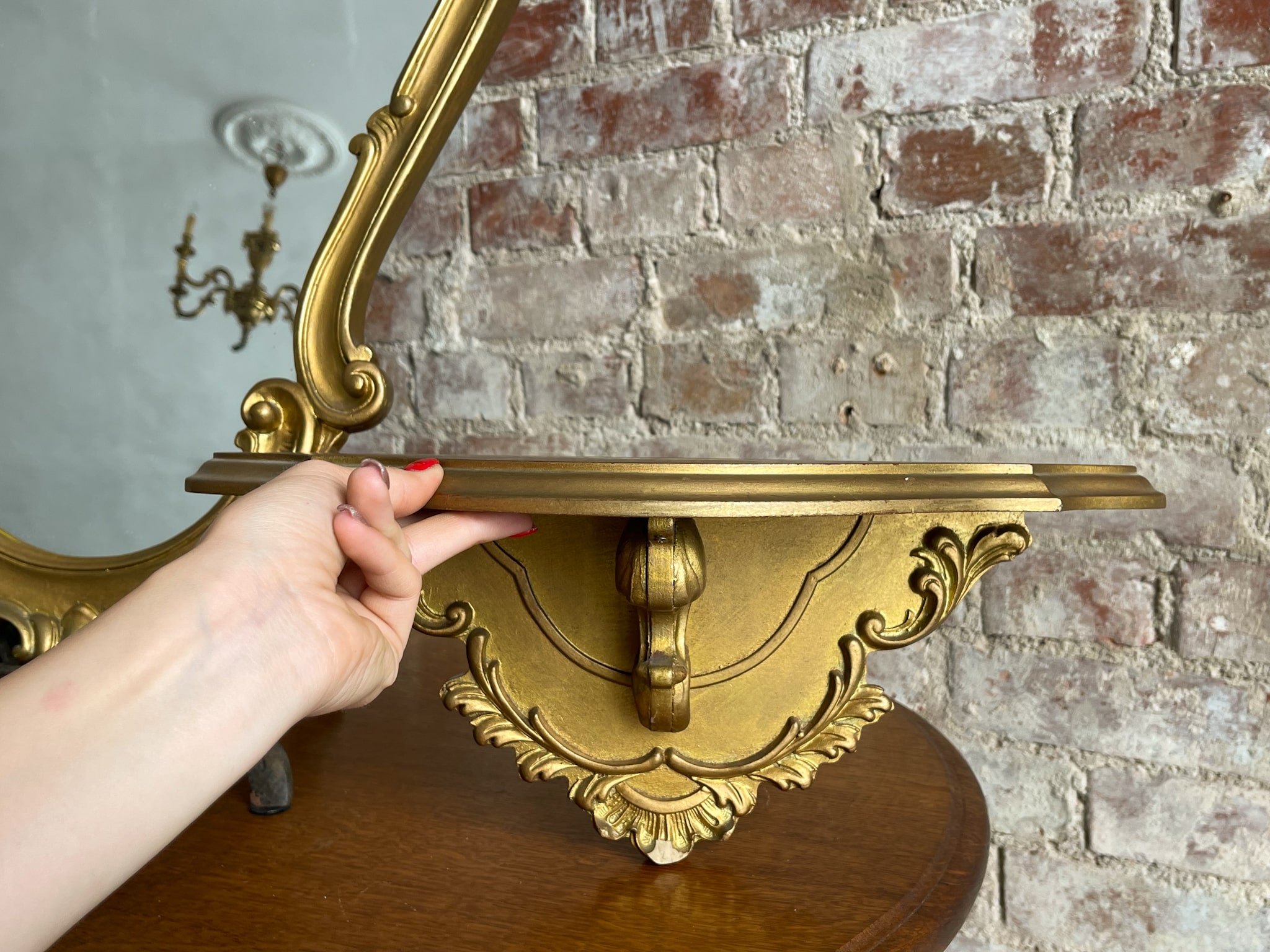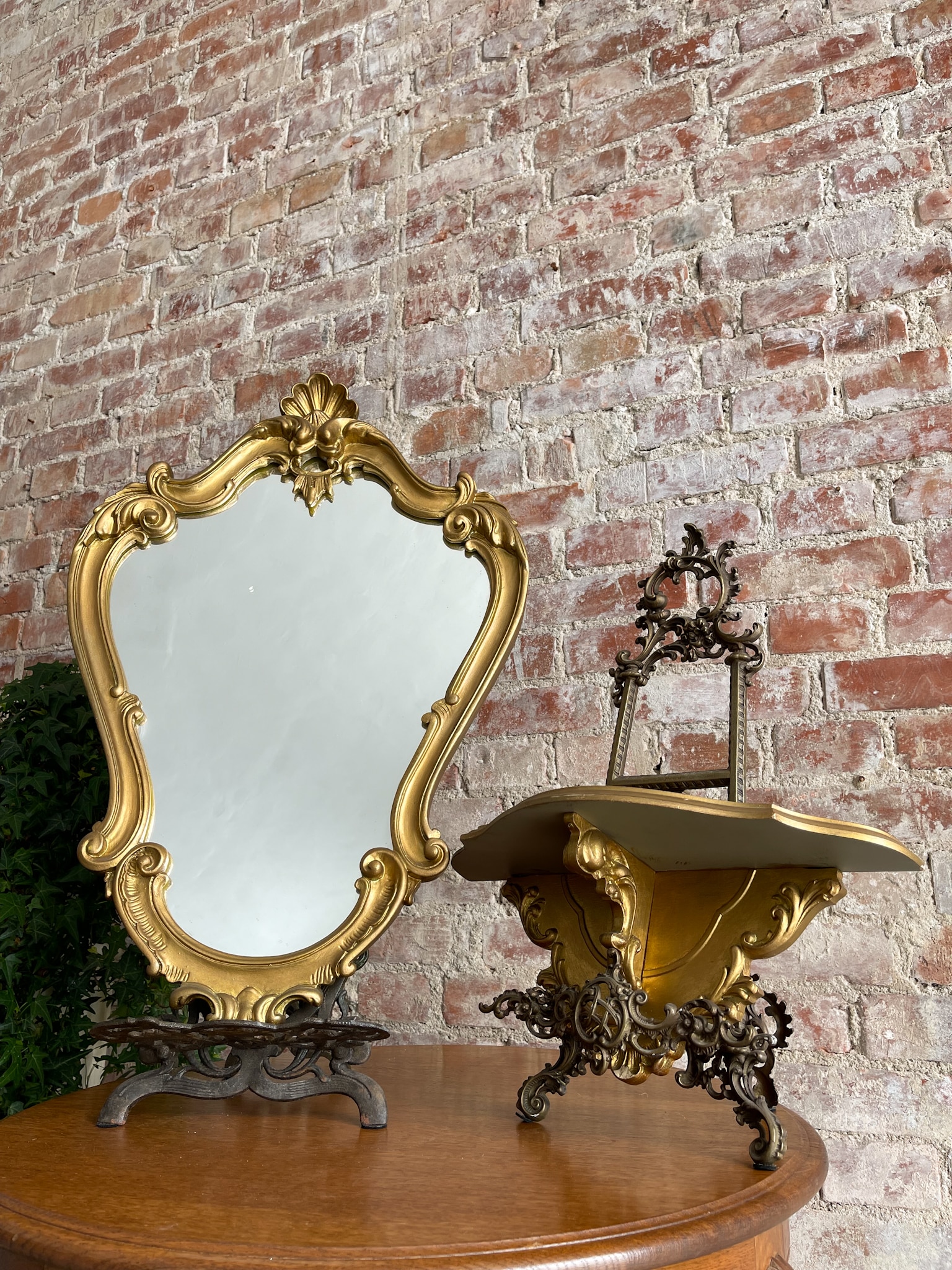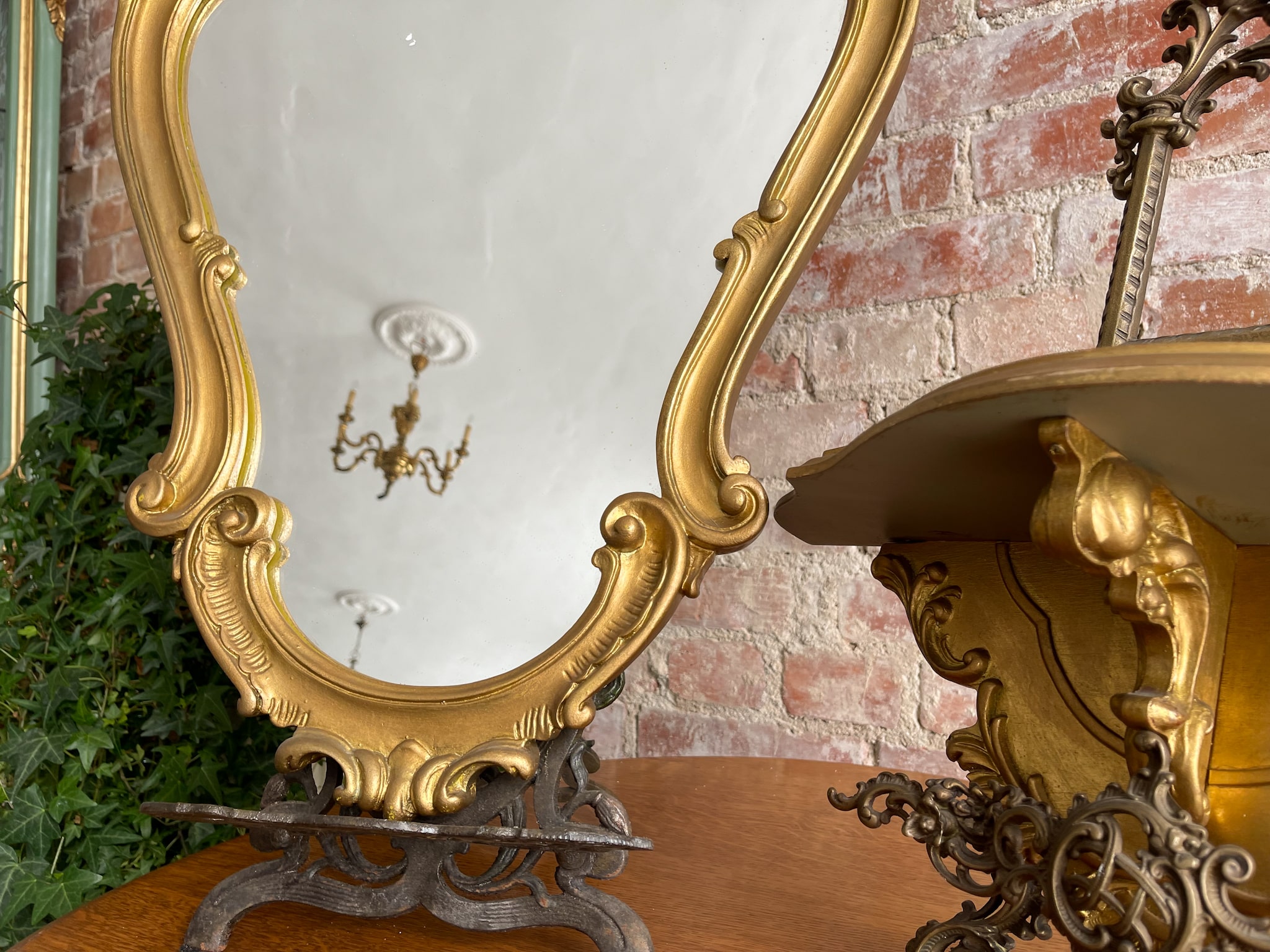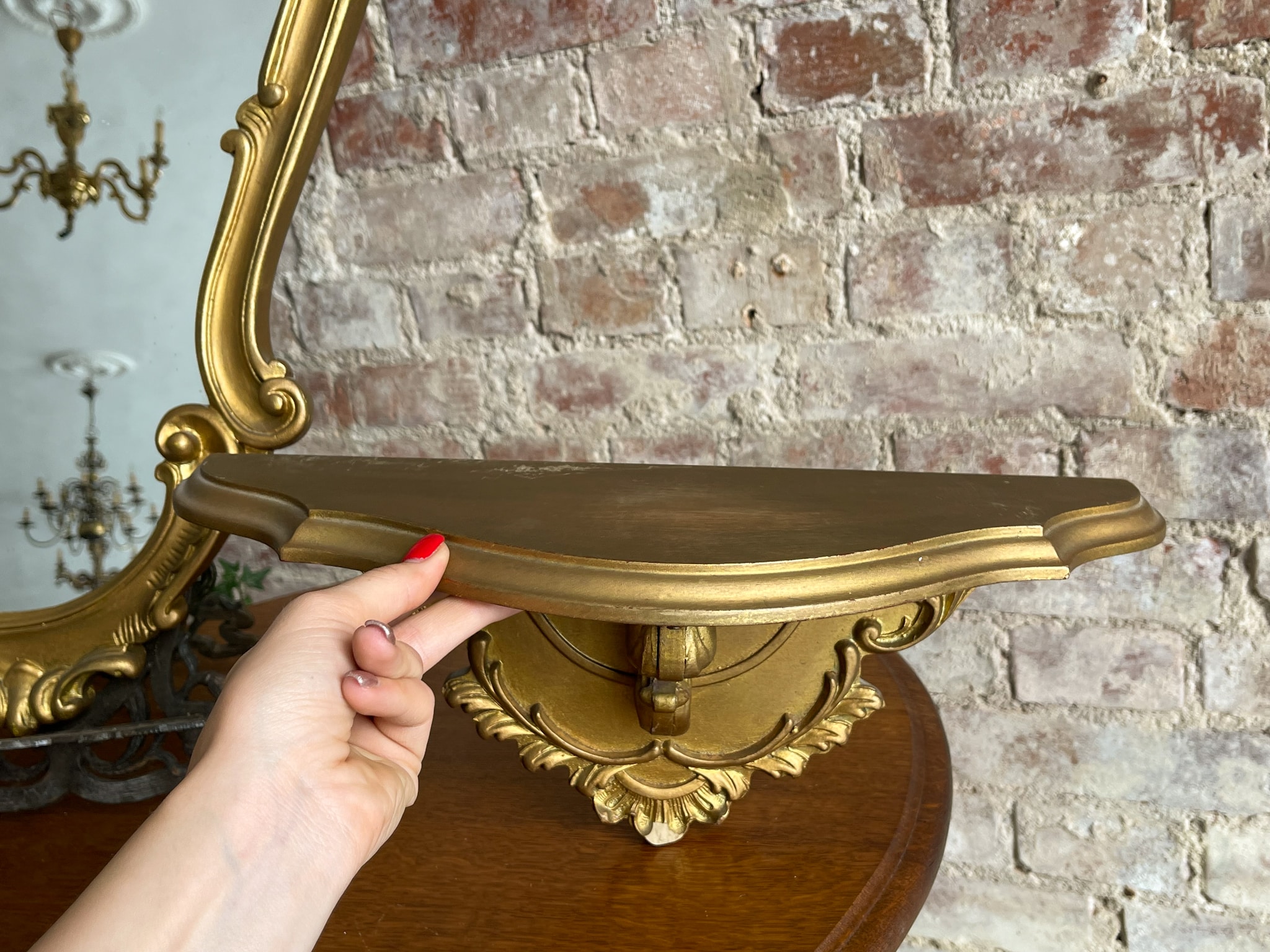 Zelta krāsas spogulis un konsole, maza izmēra (2322)